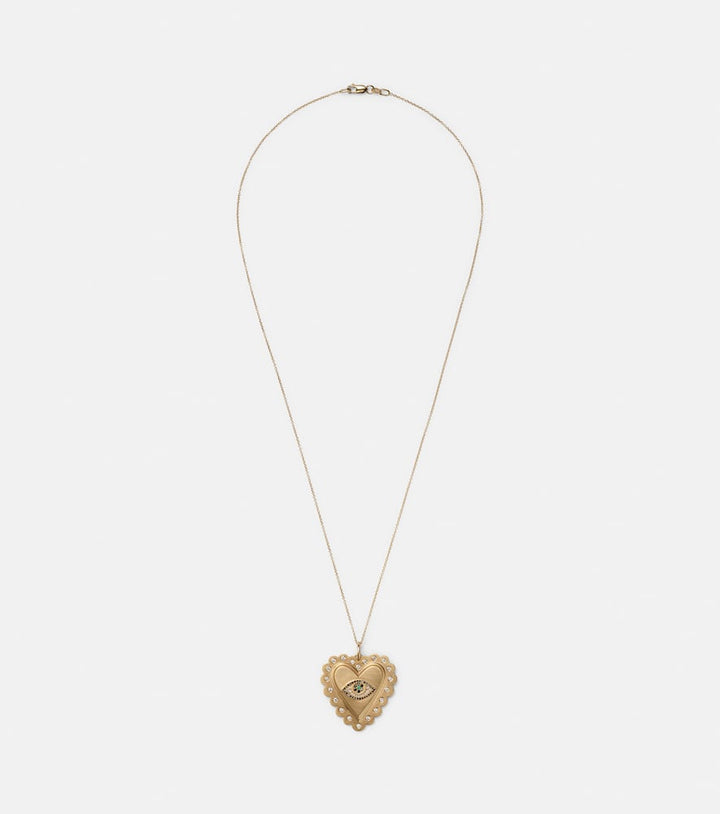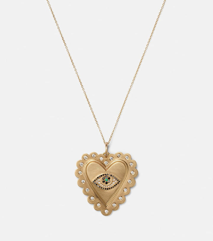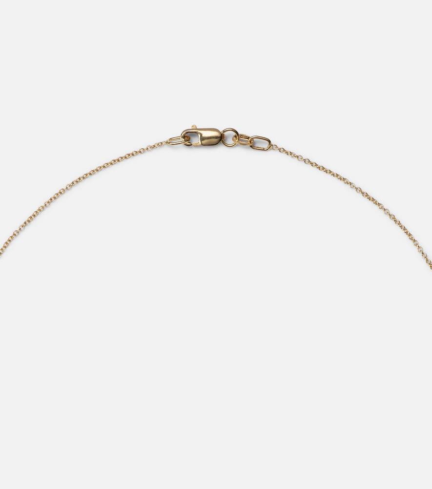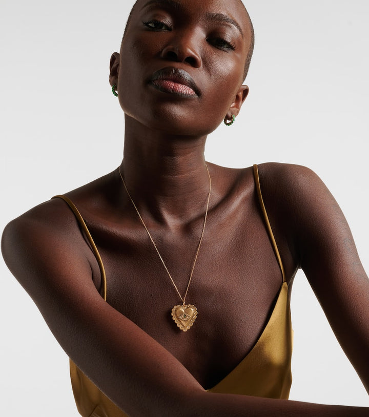 This 18kt gold necklace with diamonds and tsavorites by Ileana Makri is a captivating and symbolic piece that blends modern elegance with a touch of celestial wonder. The sleek gold chain holds a pendant that is a miniature work of art, featuring a mix of brilliant white and black diamonds and a single vibrant tsavorite. This necklace is a personal and luxurious statement, perfect for adding a touch of sparkle and unique meaning to any look.