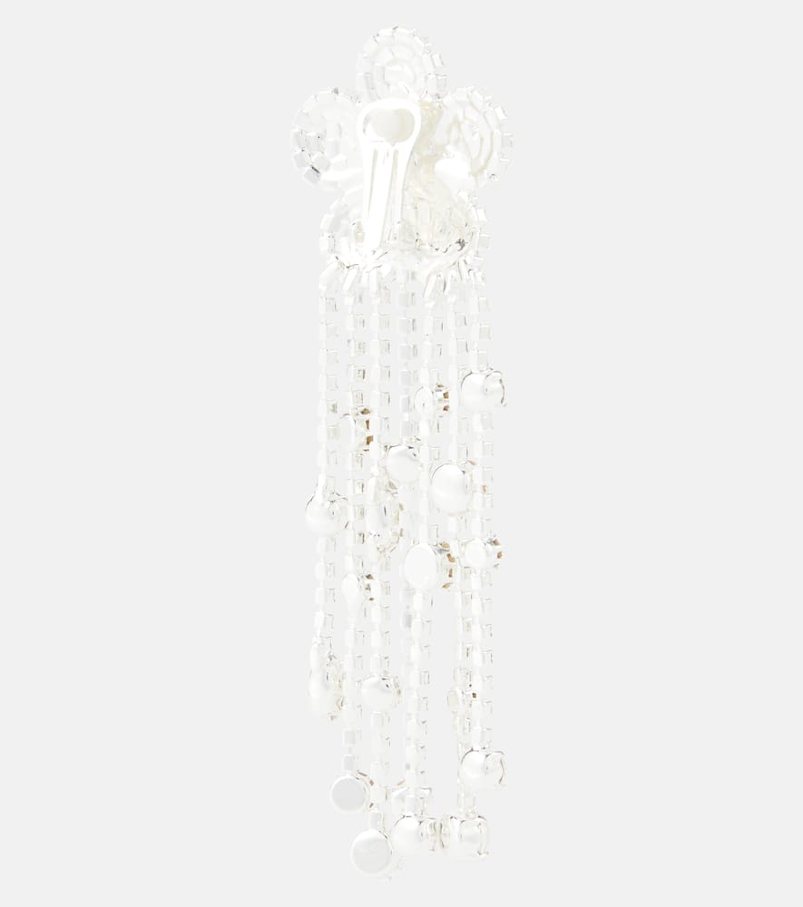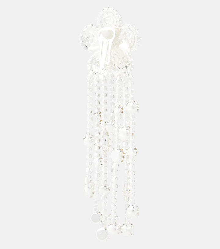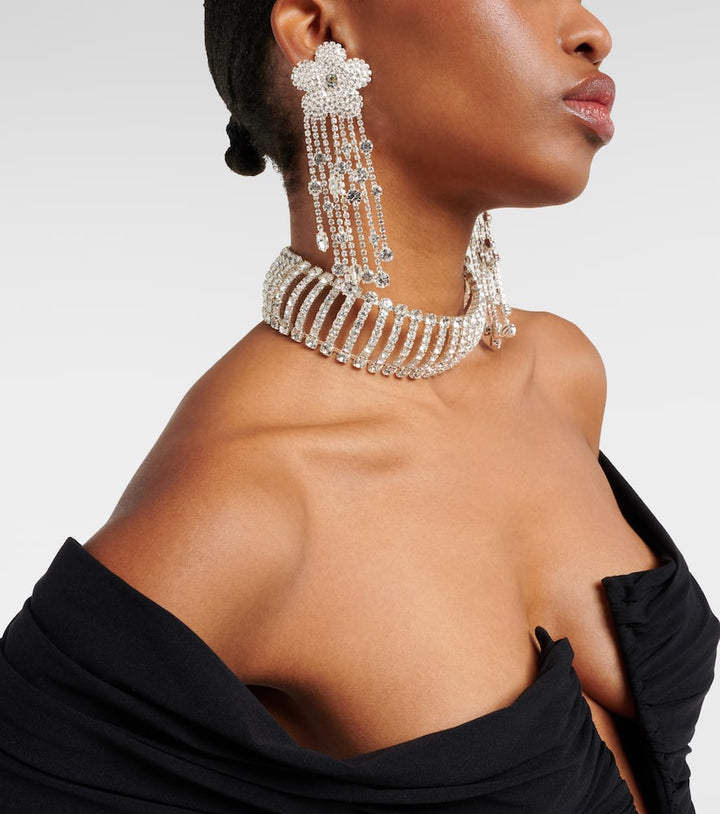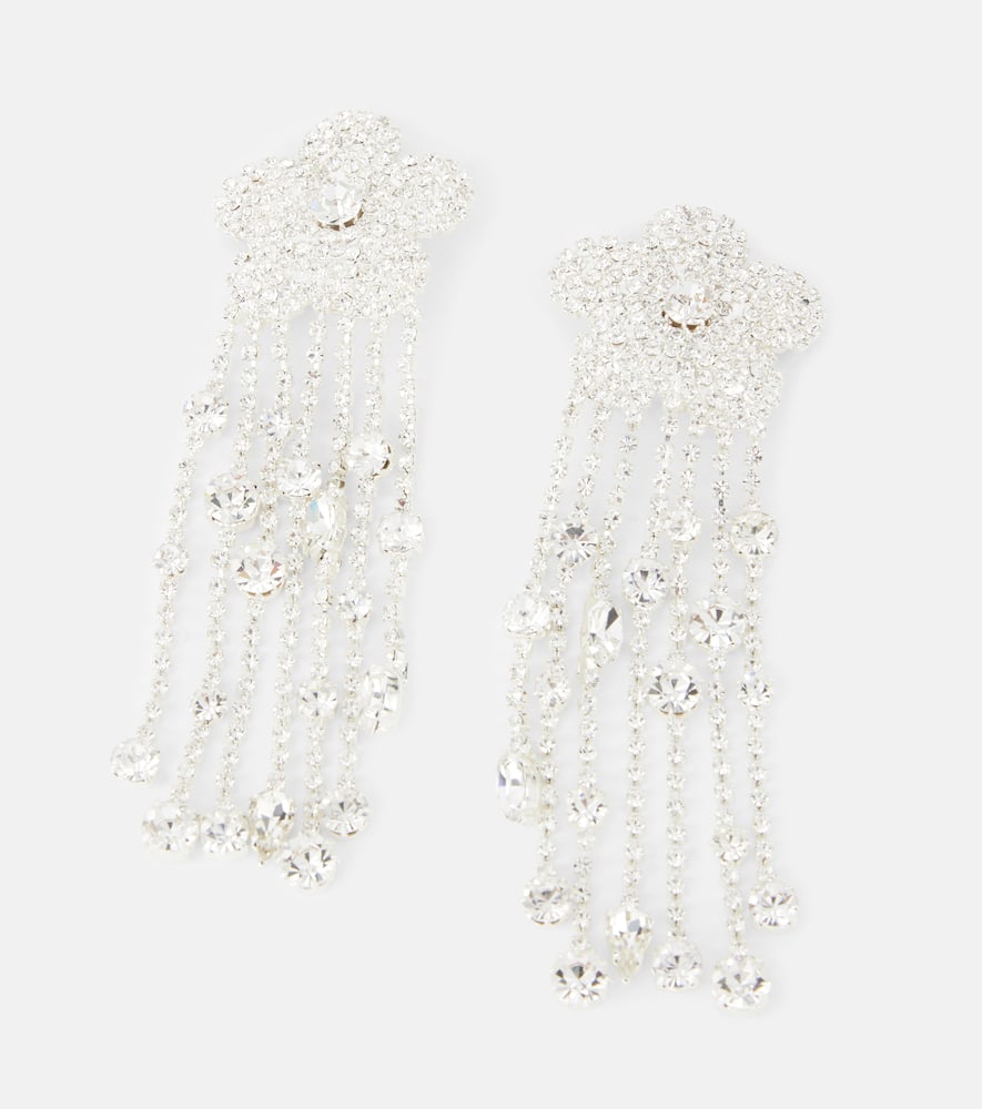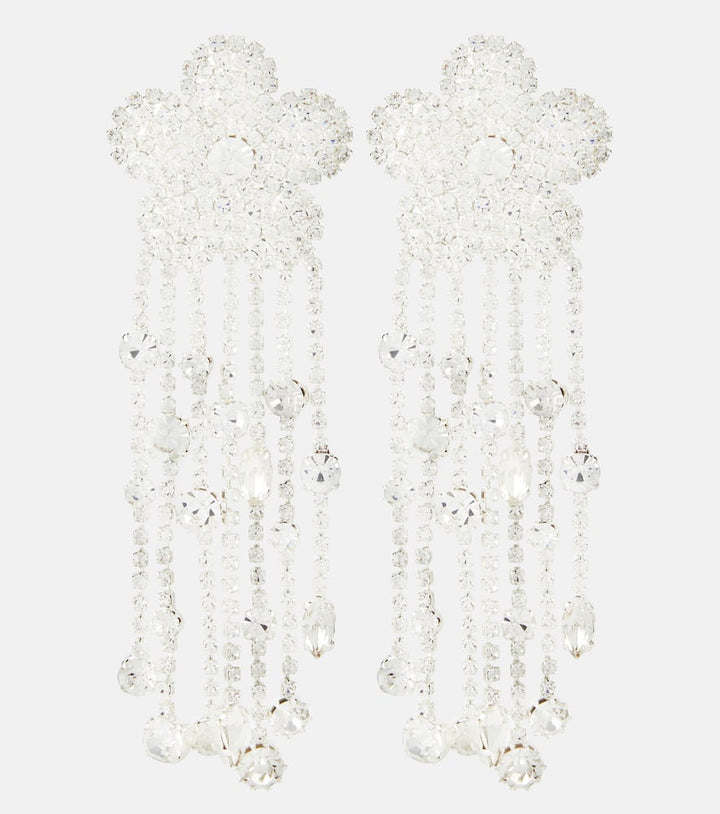 These Floral crystal-embellished earrings by Magda Butrym are a dramatic and romantic statement piece. The oversized floral silhouette, meticulously adorned with brilliant crystals, creates a captivating and luxurious look that is both whimsical and bold. These earrings are perfect for adding a touch of high-fashion glamour and artistic flair to any evening ensemble. They symbolize a love for all things beautiful and a confident approach to accessorizing.