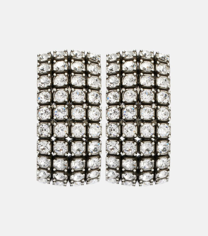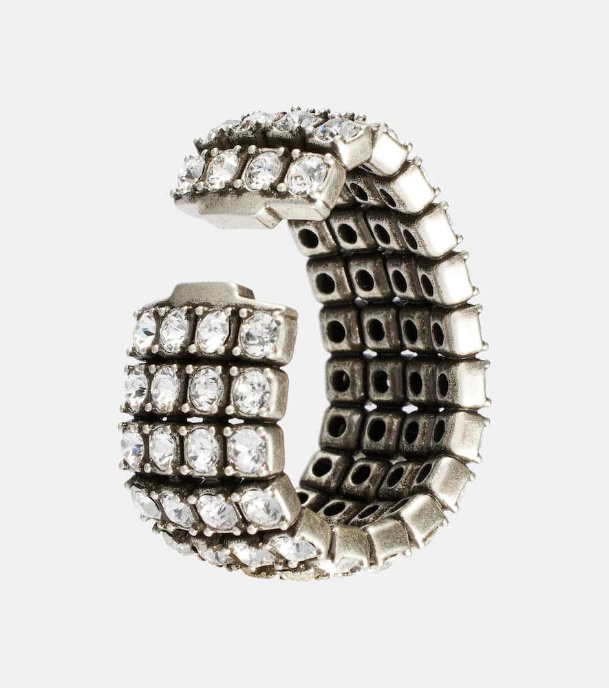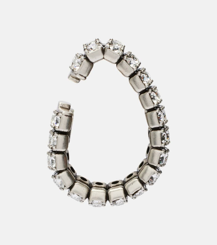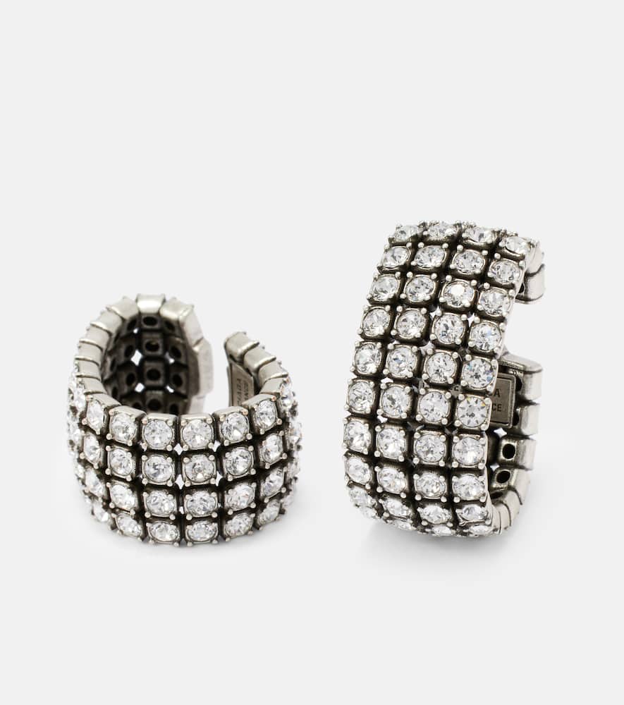 These Glam crystal-embellished ear cuffs by Balenciaga are a dramatic and edgy piece that captures the essence of modern rebellion and high-fashion glamour. The sculptural design, entirely covered in brilliant glass crystals, creates a mesmerizing sparkle. These ear cuffs are perfect for the woman who wants to make a bold, unconventional statement. They symbolize a confident, fashion-forward approach to accessorizing.