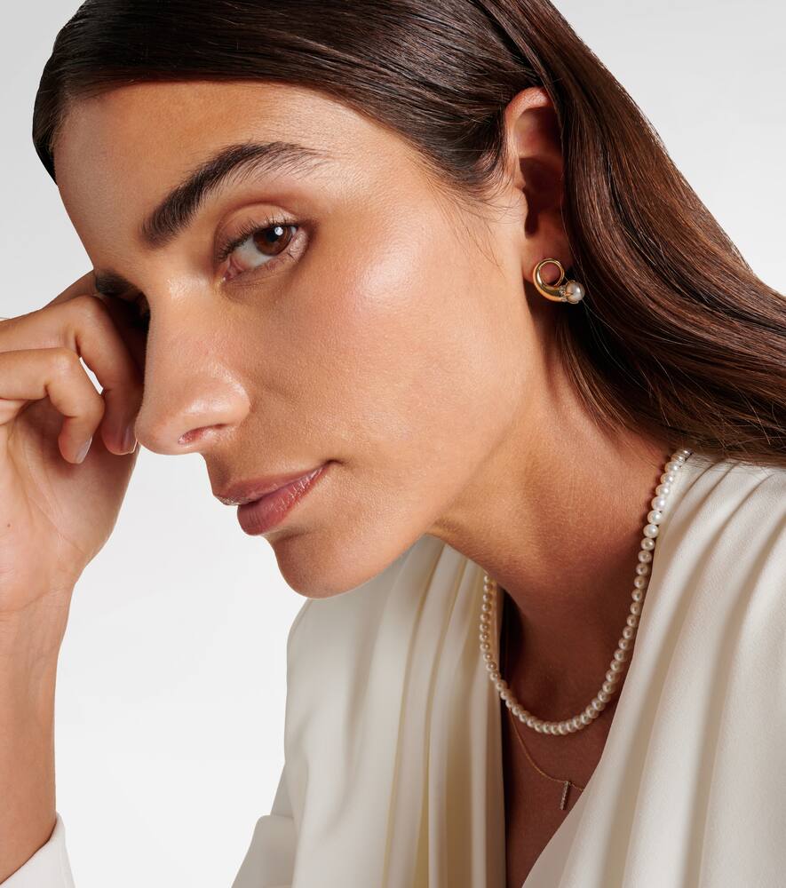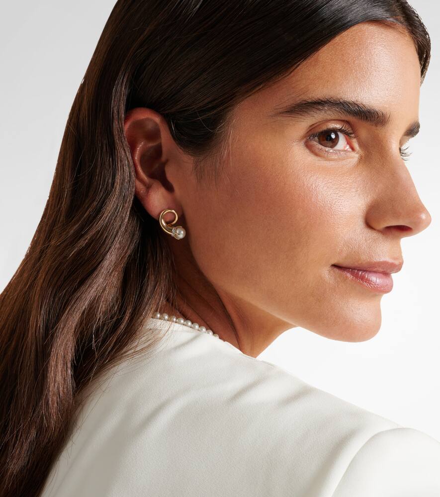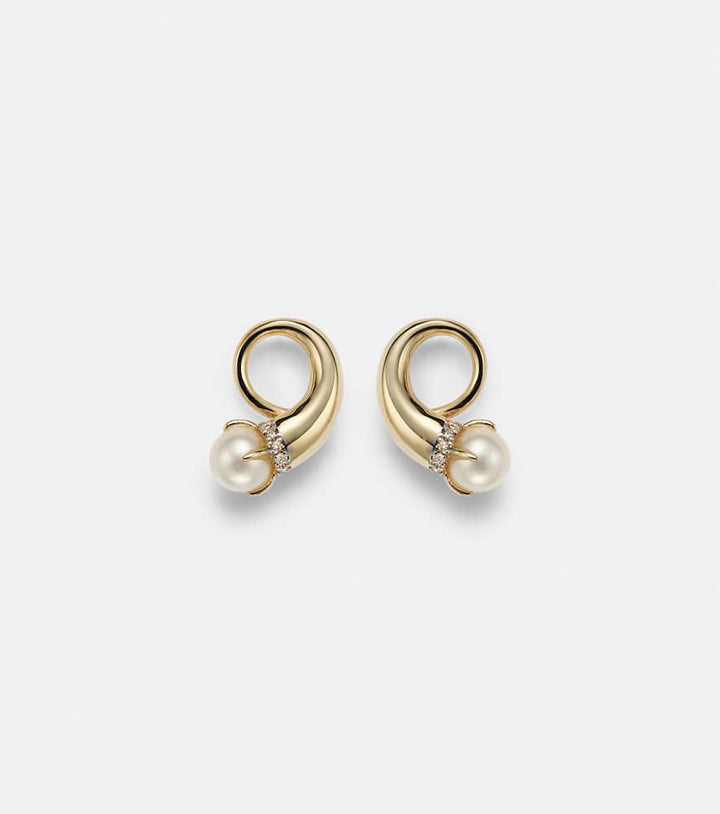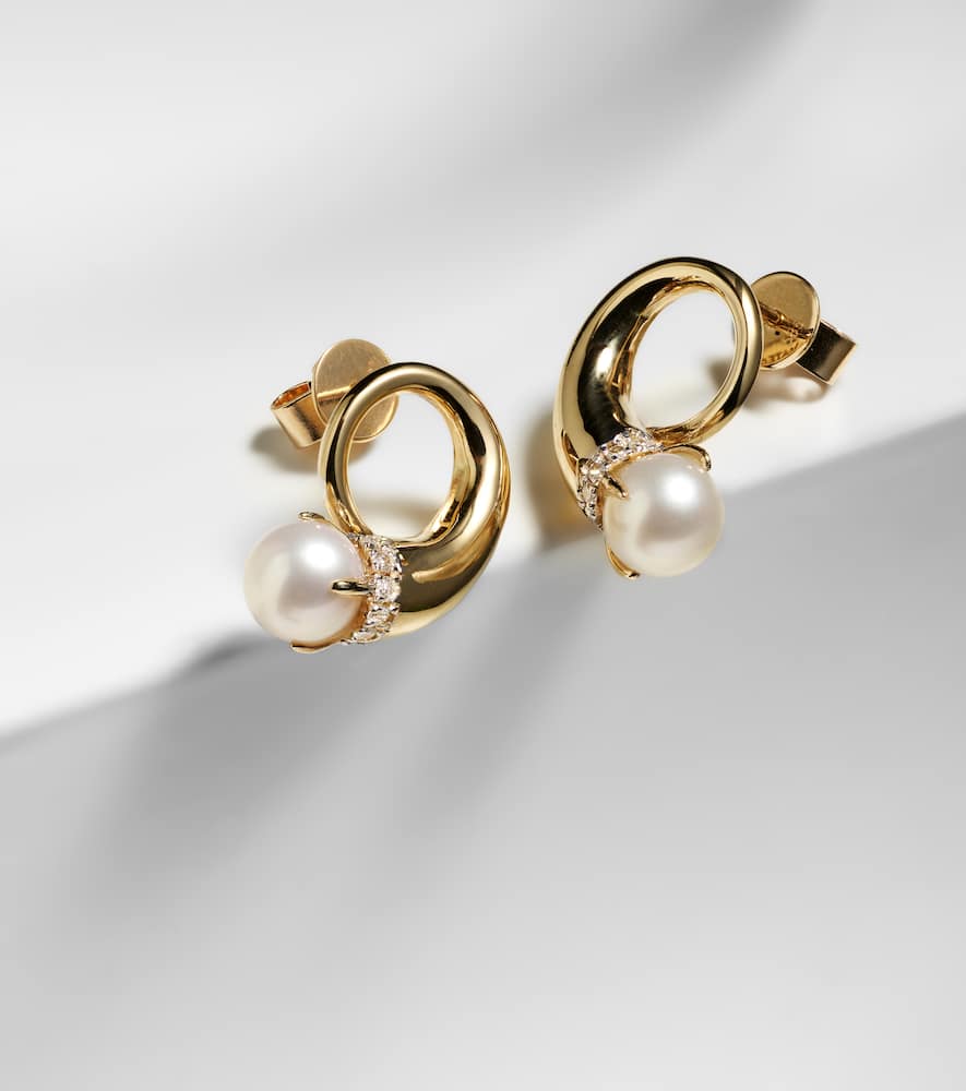 These 14kt gold earrings with diamonds and pearls by Mateo are a stunning and elegant piece that beautifully blends modern design with classic charm. The unique, sculptural silhouette features a delicate pavé setting of brilliant diamonds, which elegantly holds a lustrous freshwater pearl. These earrings are perfect for adding a touch of sophisticated sparkle and timeless romance to any look. They symbolize a love for refined details and a confident, contemporary aesthetic.