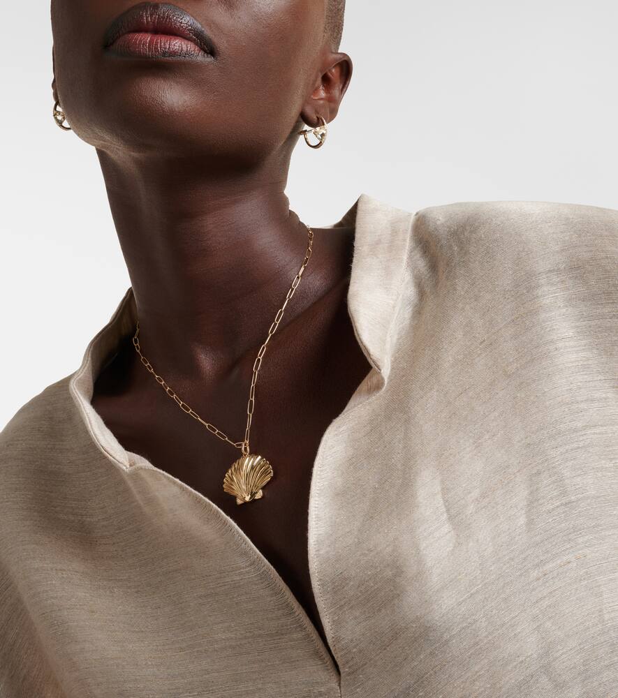 This Venus Large 14kt gold pendant necklace by Mateo is a captivating and sculptural piece that beautifully blends modern design with a touch of fluid artistry. The sleek gold chain holds a bold, abstract pendant, creating a look that is both minimalist and eye-catching. The necklace is a versatile statement piece, perfect for adding a touch of artistic flair to any ensemble. It symbolizes a confident, avant-garde approach to accessorizing.