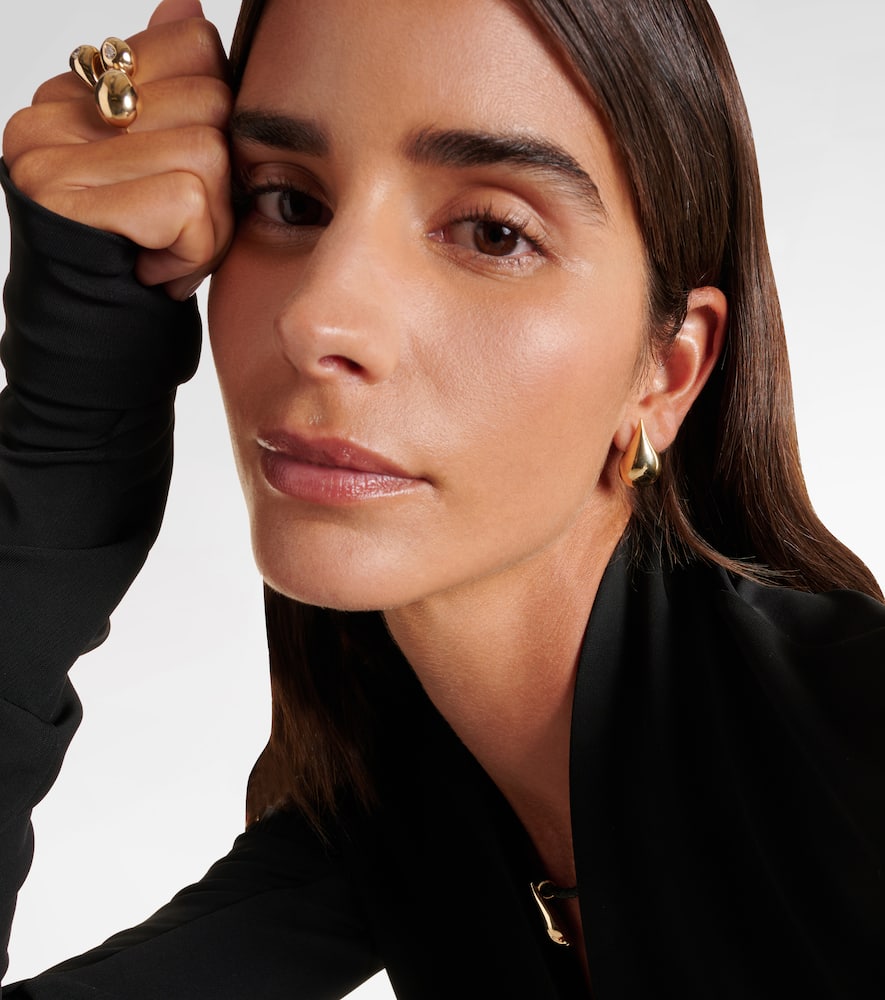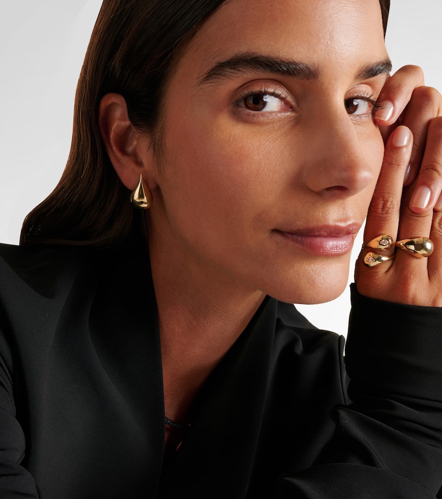 These Water Droplet 14kt gold earrings by Mateo are a beautiful example of modern, sculptural design and minimalist elegance. The unique, fluid silhouette of the polished gold offers a captivating and artistic look. These earrings are perfect for adding a touch of sophisticated flair to any ensemble, whether worn for a special occasion or as an everyday statement piece. They symbolize a love for clean lines and a confident, contemporary aesthetic.
