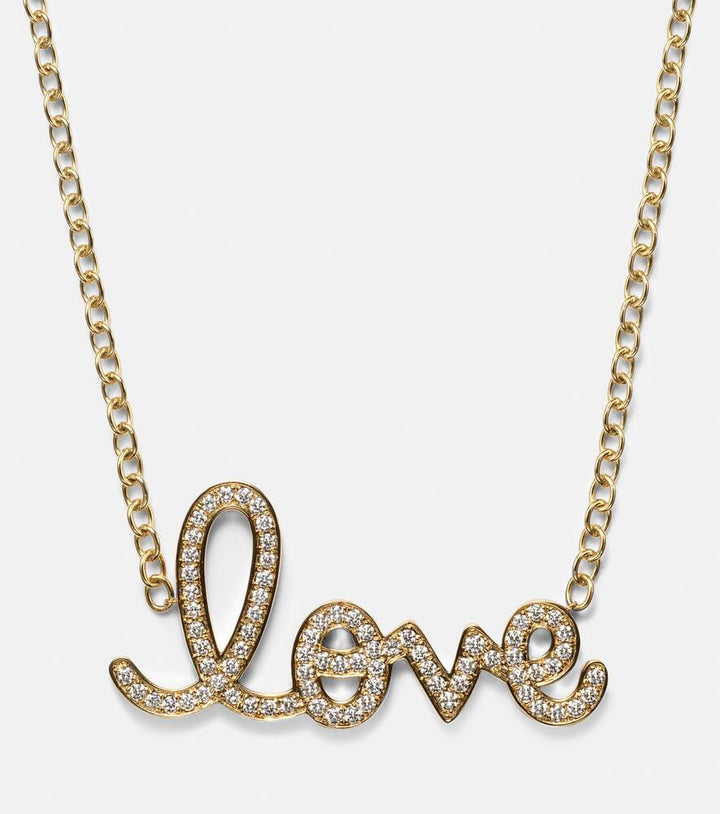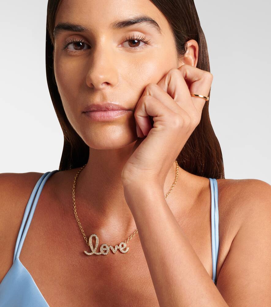 This Love 14kt gold necklace with diamonds by Sydney Evan is a bold and radiant piece that captures the essence of love and luxury. The delicate chain holds a single, beautiful "Love" pendant, meticulously adorned with a breathtaking array of pavé-set diamonds. This necklace is a powerful statement of affection and style, perfect for adding a touch of confident, luxurious sparkle to your neckline. It symbolizes a love for all things beautiful and a passionate approach to accessorizing.