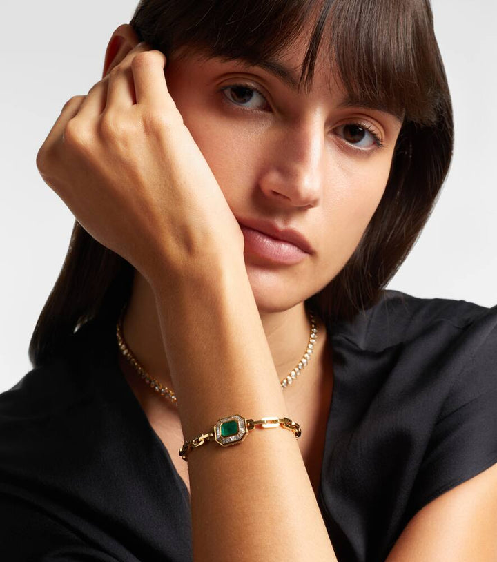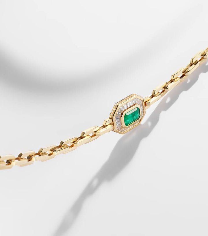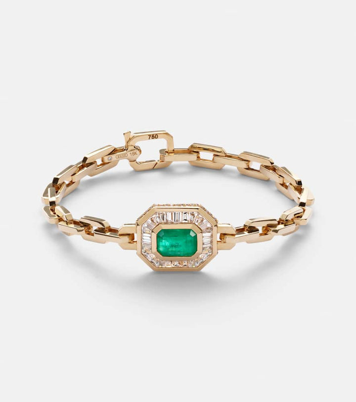 18kt gold bracelet with emerald and diamonds
