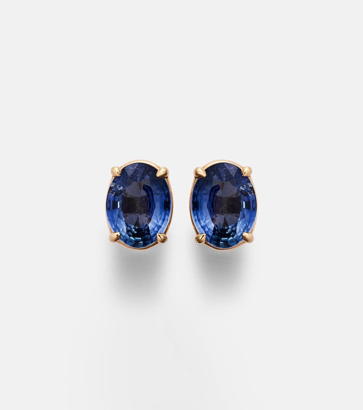 Crafted in the USA from 18k rose gold, these earrings feature 4.4ctw of oval-cut, prong-set sapphires. They have a butterfly-back fastening for pierced ears and a maximum width of 7mm (0.3 inches).