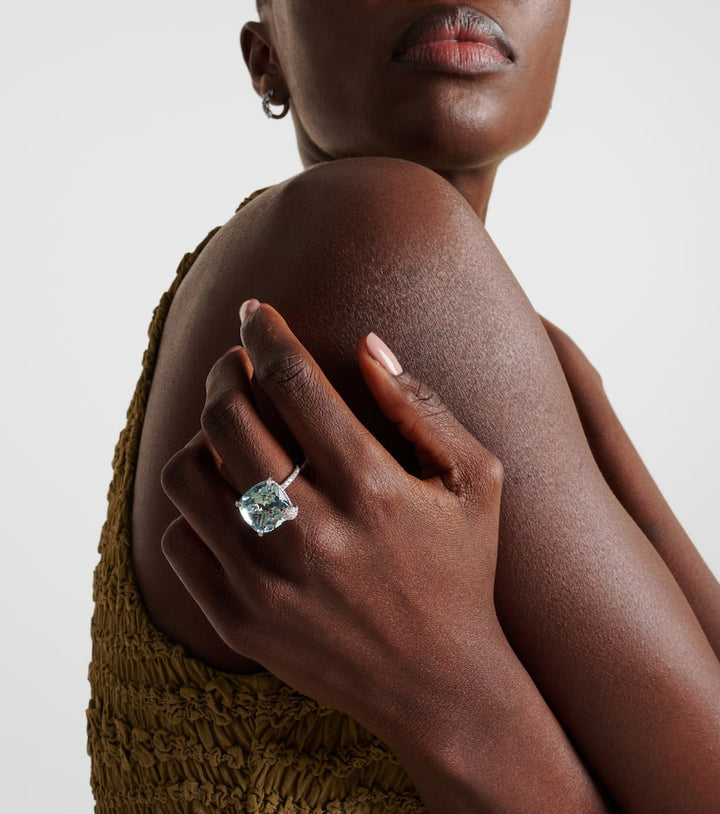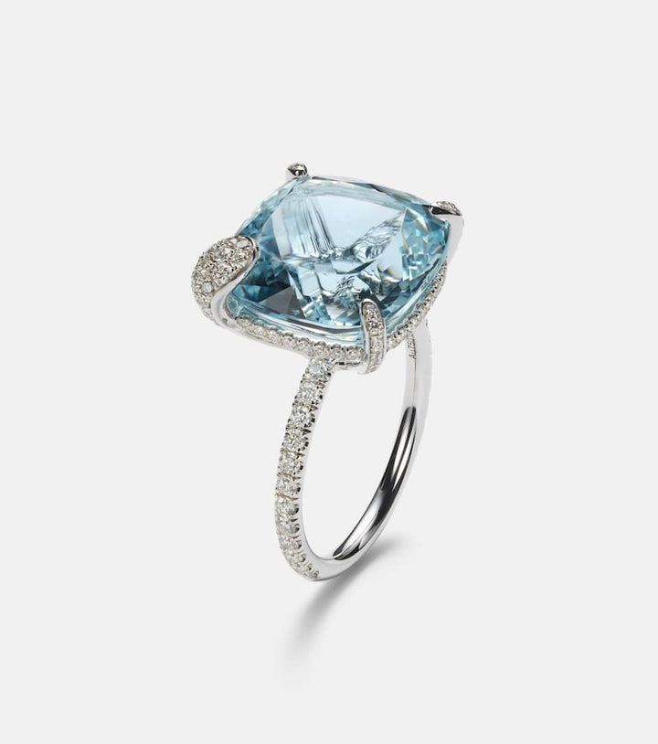 Peekaboo 18kt white gold ring with aquamarine and diamonds