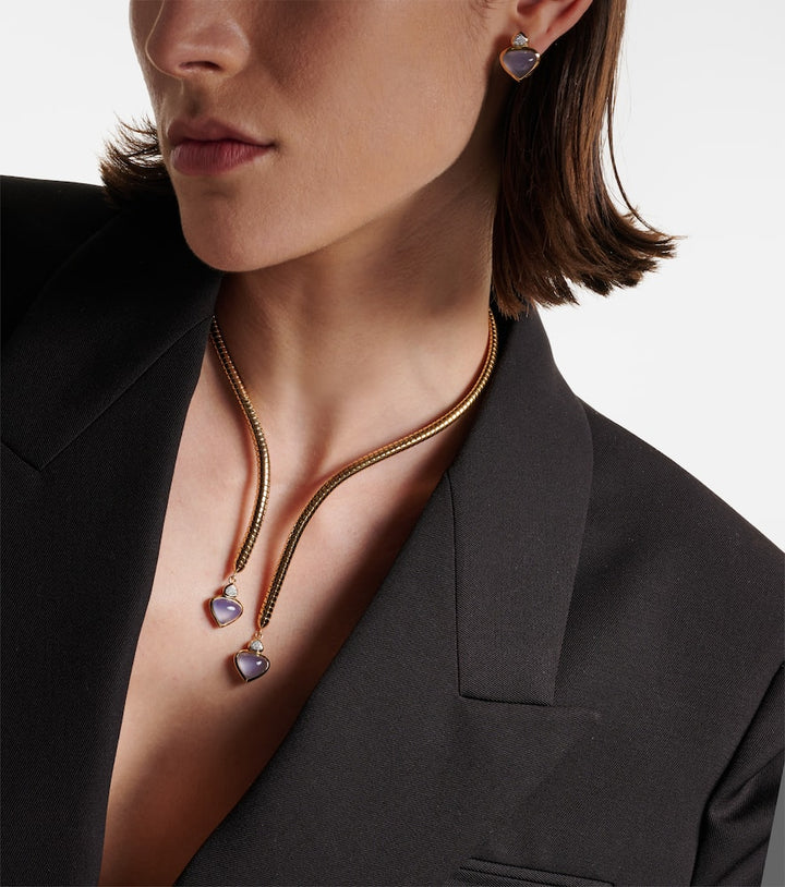 Trisolina 18kt gold necklace with blue chalcedony and diamonds