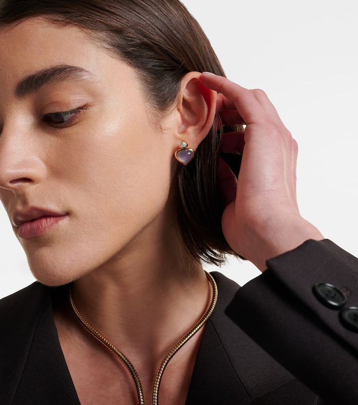 Trisolina 18kt gold earrings with blue chalcedony and diamonds