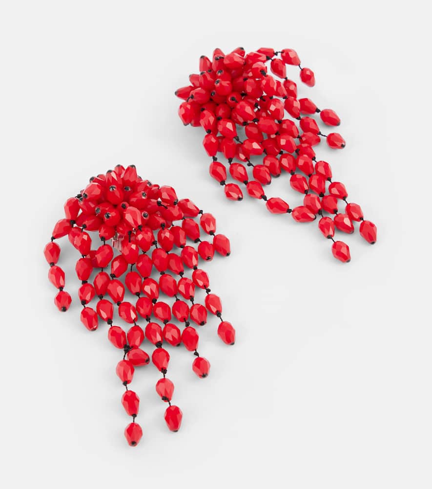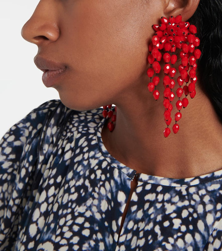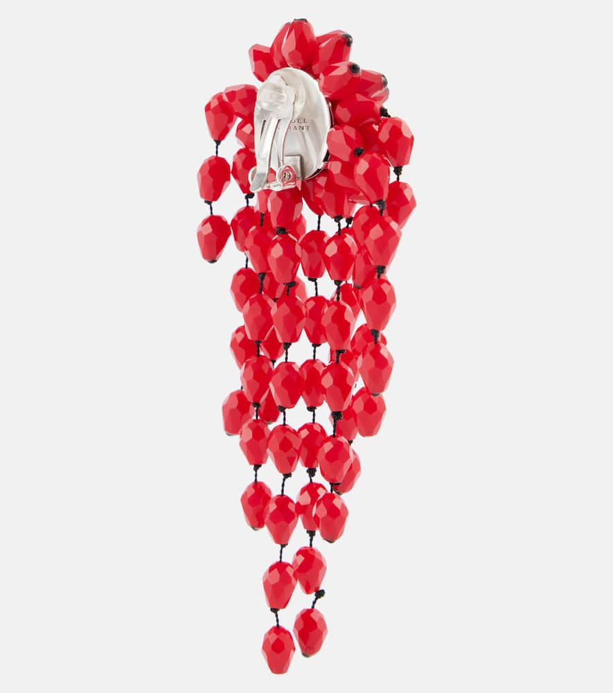 These Isabel Marant Hanabi Earrings by Isabel Marant feature striking elongated silhouettes with vibrant glass accents set in polished brass, conveying contemporary elegance and playful artistry. Perfect for dramatic statement styling.