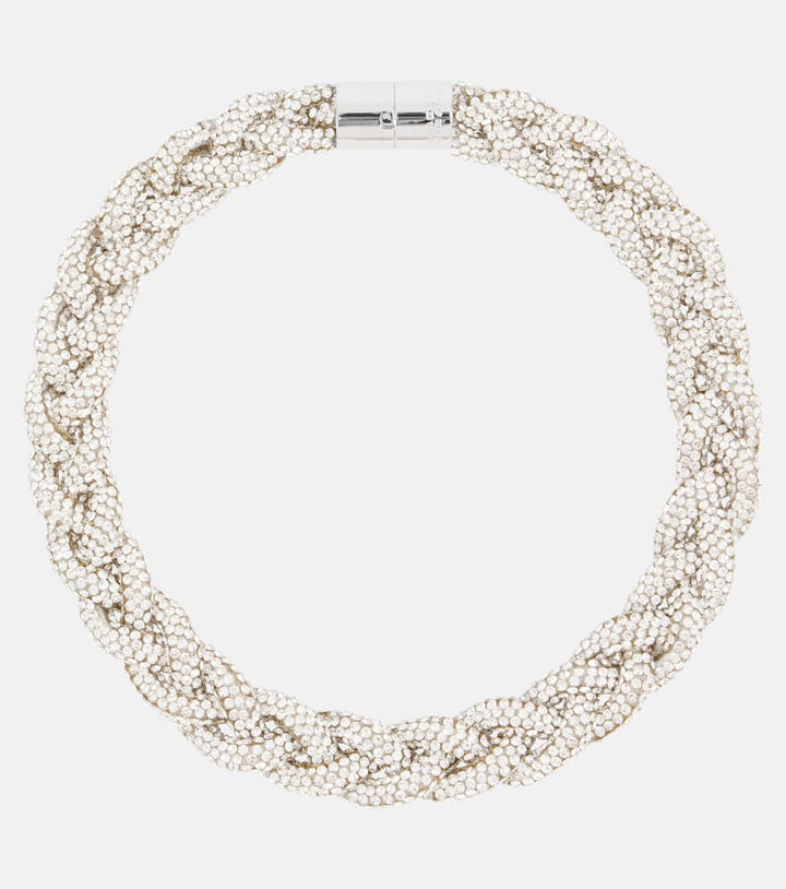 This Isabel Marant Yua Choker by Isabel Marant combines brass and glass accents with a magnetic closure, offering modern sophistication and subtle shimmer. Its compact design makes it ideal for layering or wearing alone for a statement touch.