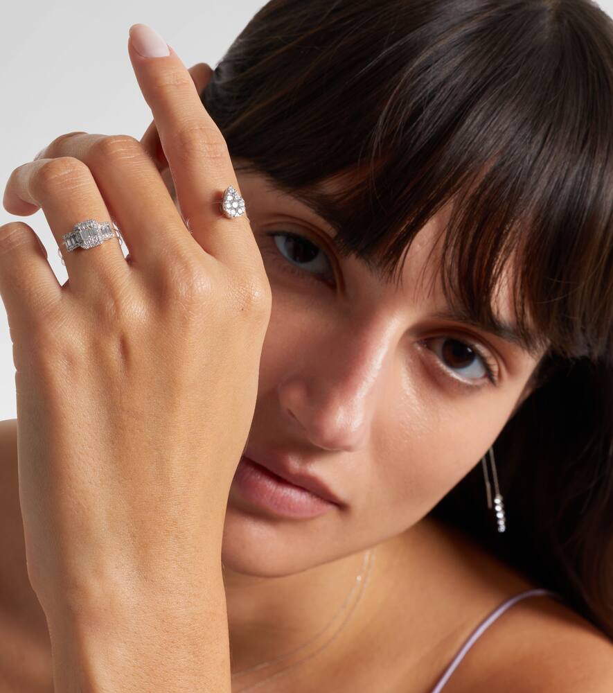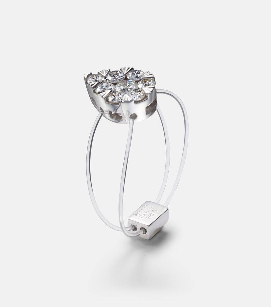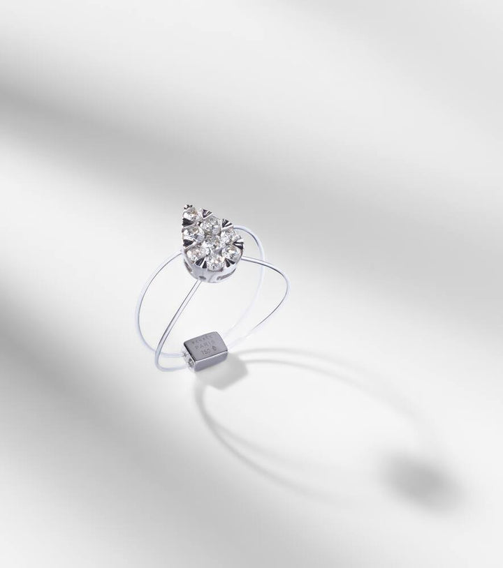 This Persée Floating 18kt White Gold Ring with Diamonds by Persée showcases pear-shaped diamonds set along a sleek band, combining sculptural sophistication with delicate sparkle. A statement of understated luxury.