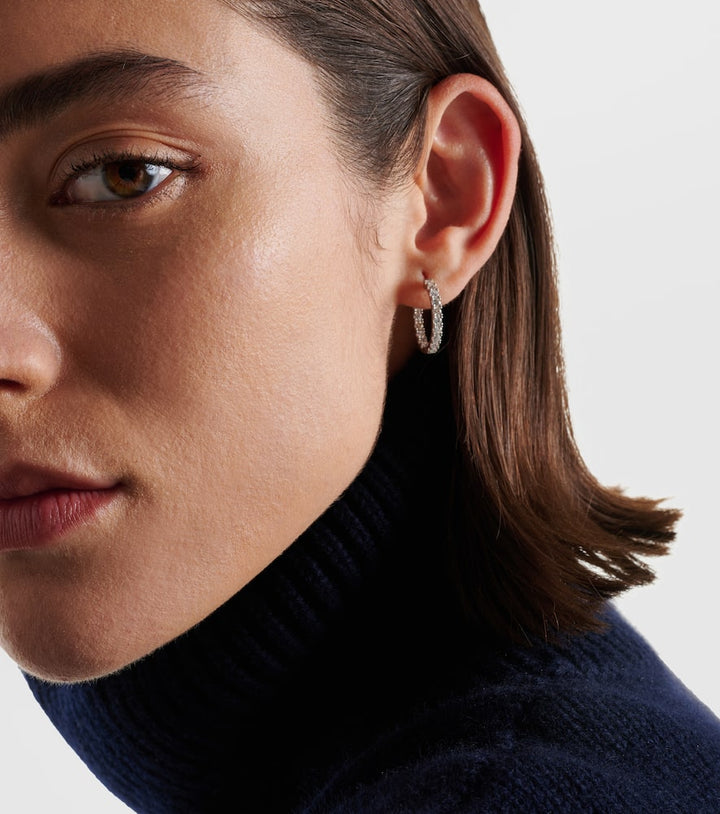 These Roxanne First 14kt White Gold Earrings with Diamonds by Roxanne First are sleek, modern, and dazzling, with pavé-set diamonds highlighting a refined circular silhouette. Ideal for elegant everyday wear or as a statement accessory.