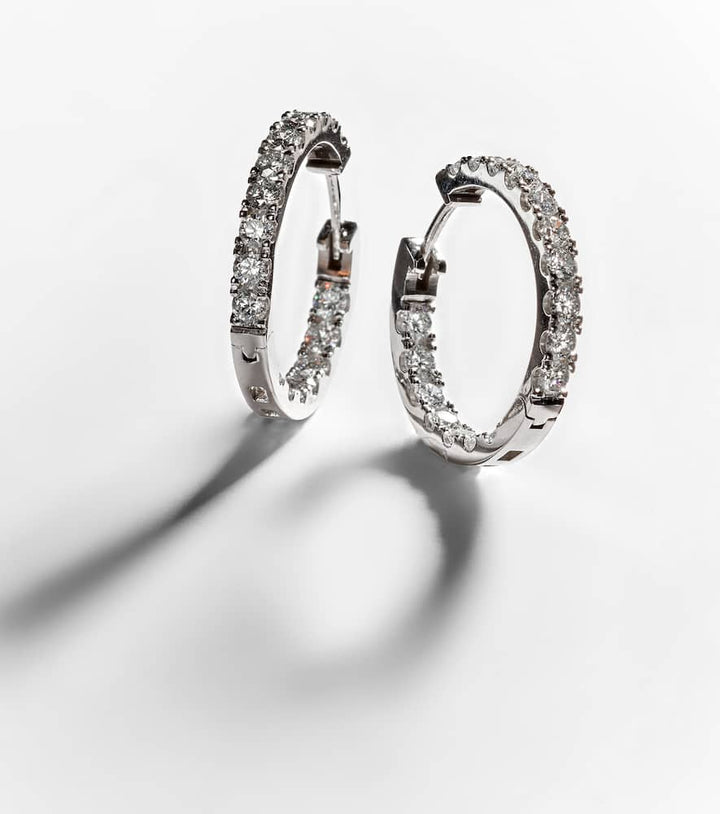 Handcrafted in 14kt white gold with diamonds totaling 1.8 ct, maximum width 2 mm, diameter 16 mm. Made in Greece.