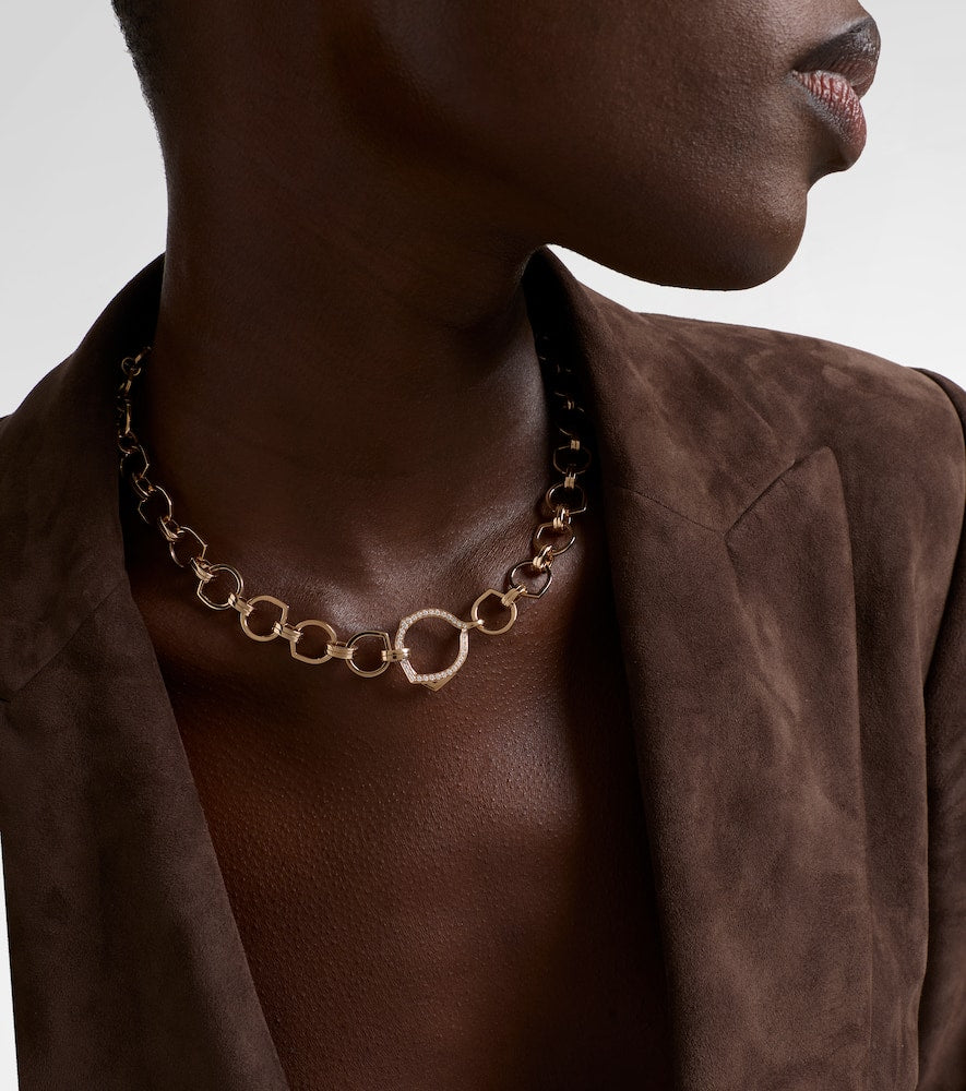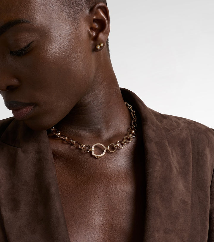 This Repossi Antifer 18kt Rose Gold Necklace with Diamonds by Repossi is a subtle statement of contemporary elegance, featuring pavé-set diamonds along a polished rose gold chain.