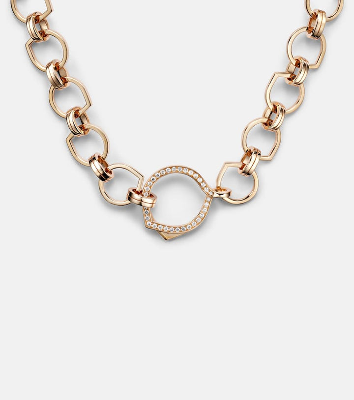 Handcrafted in 18kt rose gold with diamonds totaling 0.40 ct, chain length 42.5 cm, maximum width 21 mm. Made in Italy.