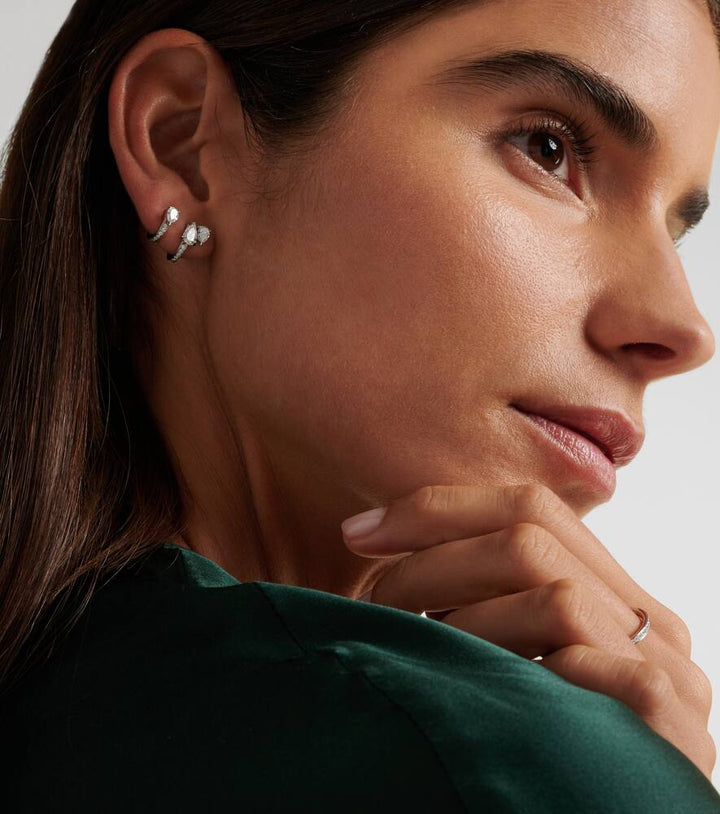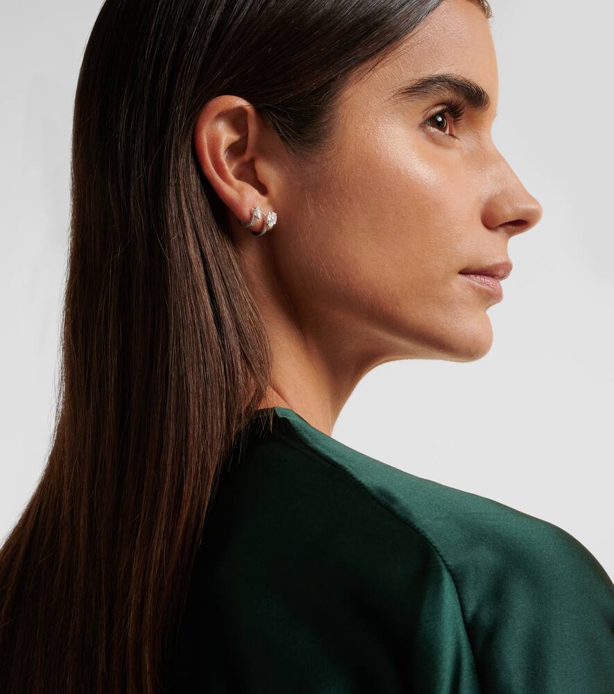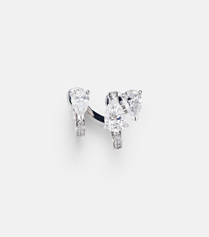 This Repossi Serti Sur Vide 18kt White Gold Single Earring with Diamonds by Repossi is a sculptural design, with pear-shaped diamonds complemented by pavé-set accents, creating a striking, modern aesthetic.