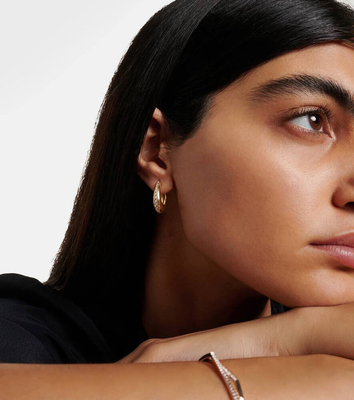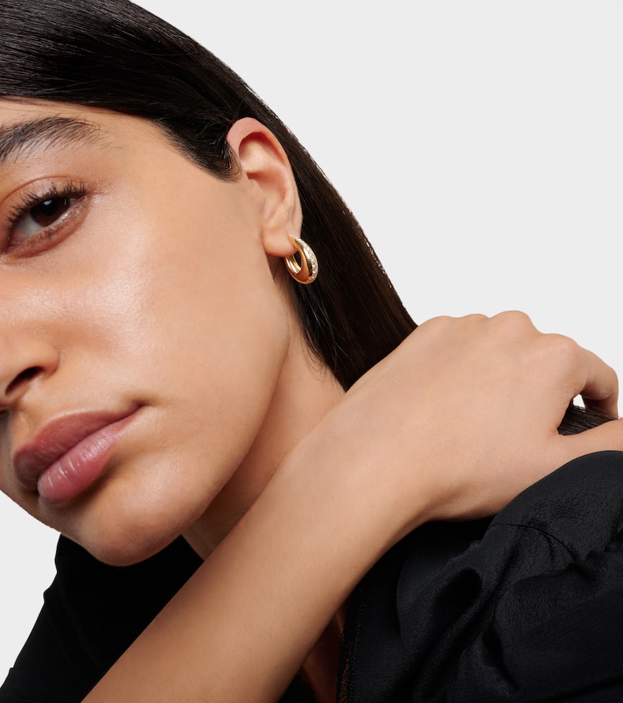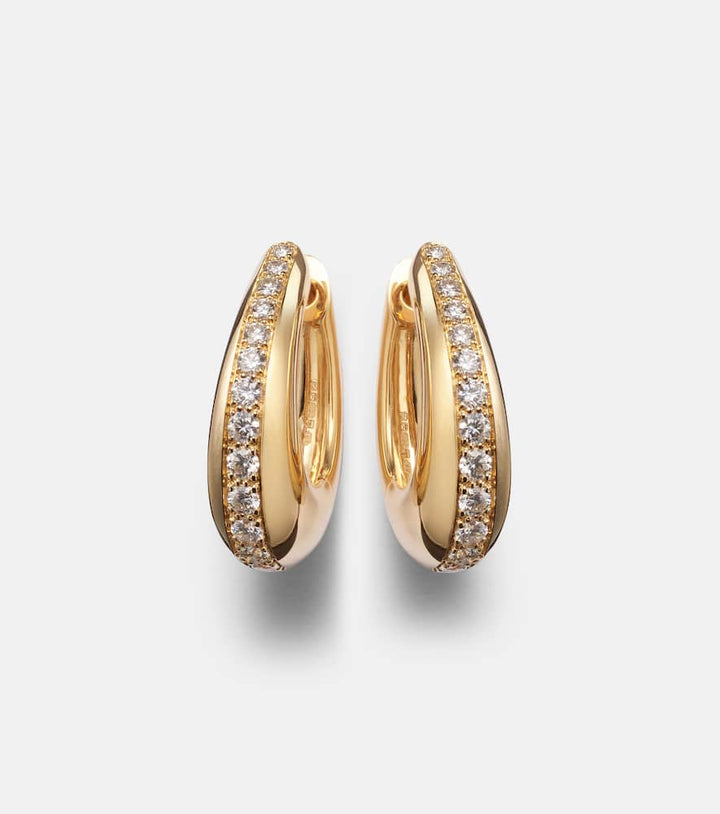 These Chakra Icon 18kt Gold Earrings with Diamonds by Ananya combine classic brilliance with spiritual symbolism. The pavé-set round diamonds catch light from every angle, conveying radiance and a sense of empowerment. Designed to evoke balance and elegance, they are perfect for adding a touch of refined sparkle to any ensemble, embodying both luxury and intention.