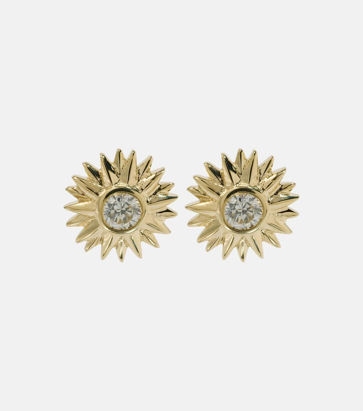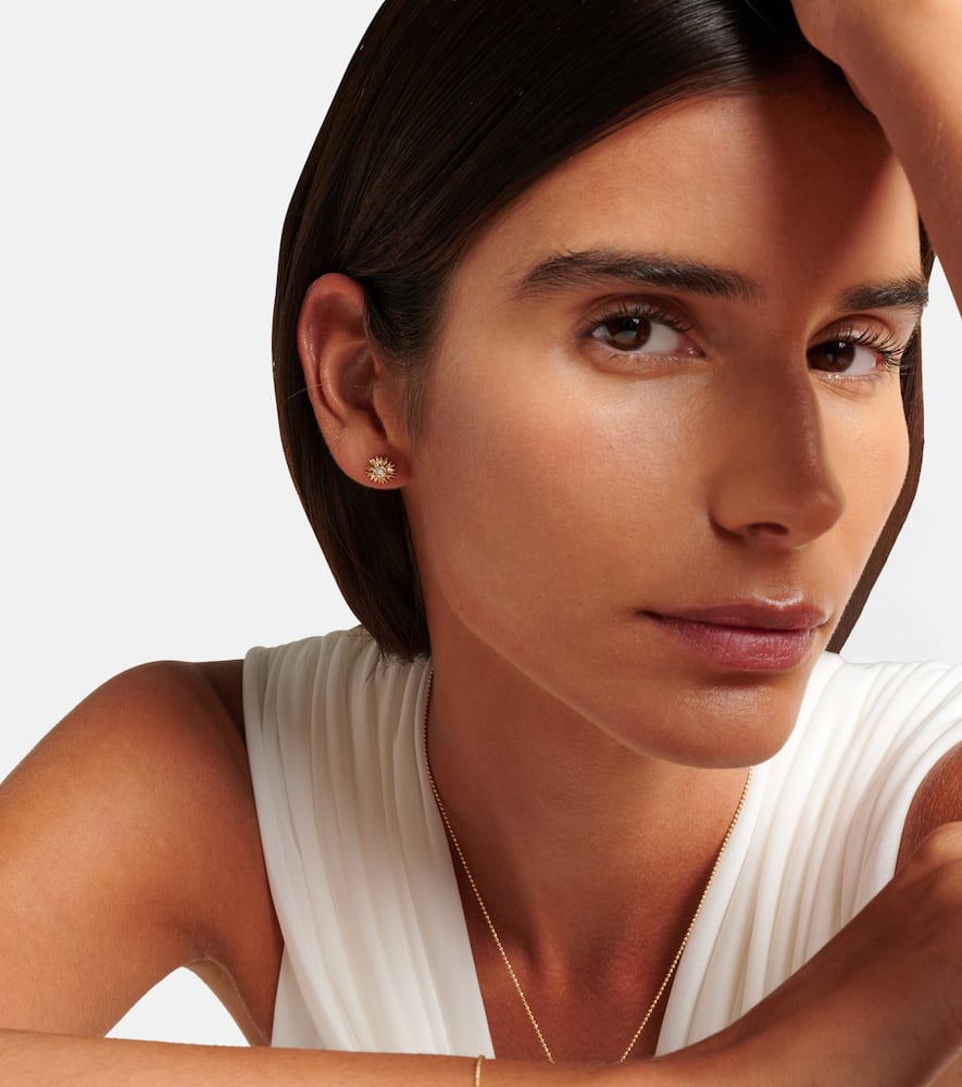 These Sunburst 14kt Gold Earrings with Diamonds by Sydney Evan radiate luminous elegance. The pavé diamonds arranged in a sunburst pattern catch the light beautifully, offering a delicate yet striking accessory for refined everyday or special occasion styling.