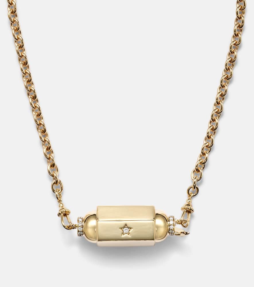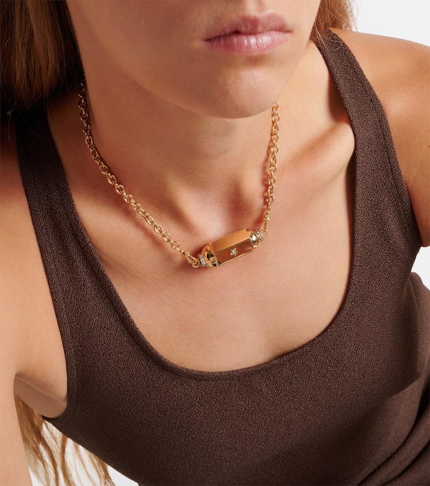 Handcrafted in 18kt yellow gold with 23 flush-set round-cut diamonds, total 0.78ct. Pendant length: 19mm; Pendant width: 53mm; Chain width: 5mm; Adjustable length: 37.5–42cm. Made in Thailand.