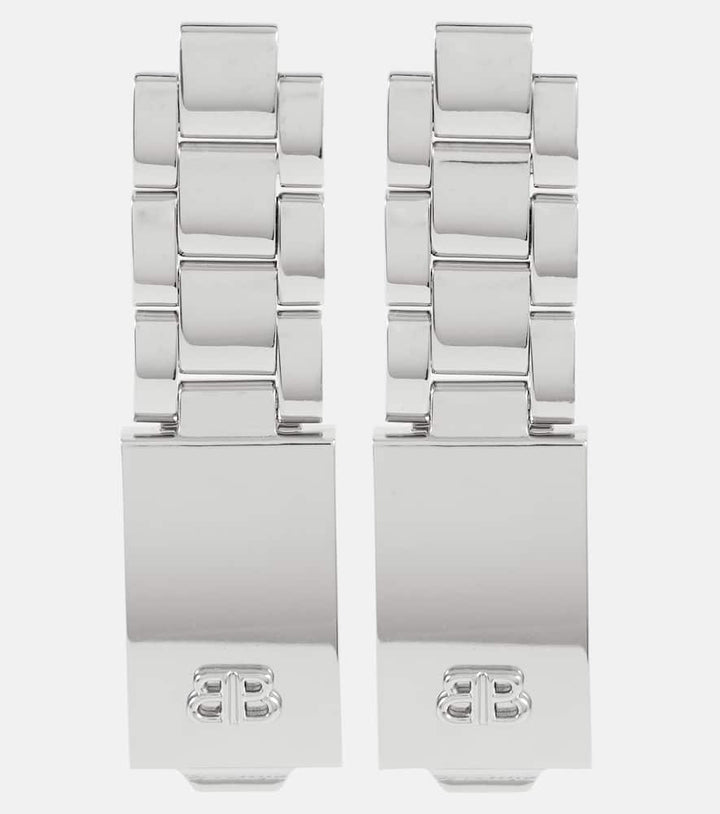 These 24/7 Monaco BB Drop Earrings by Balenciaga combine sleek lines with contemporary edge. The elongated silhouette conveys modern sophistication and effortless style, perfect for statement-making elegance.