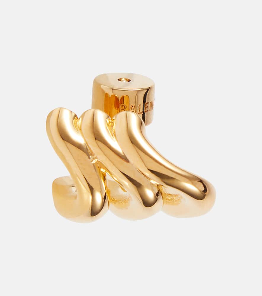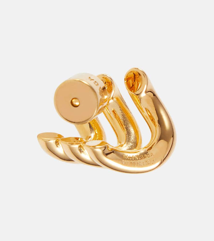 These Loop Trio Earrings by Balenciaga feature a minimalist, modern design with three interlocking loops. They convey contemporary elegance and are versatile for everyday or evening wear.
