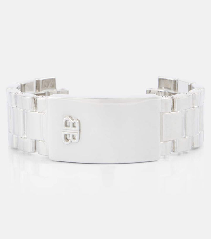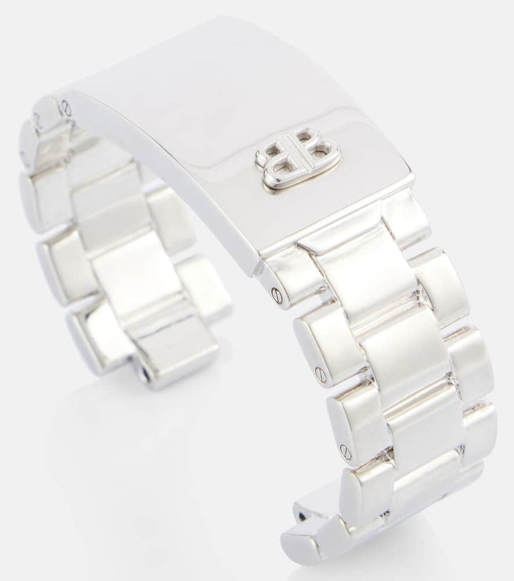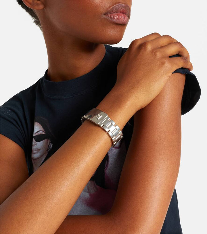 This 24/7 Cuff Bracelet by Balenciaga is a modern, architectural piece that exudes refined strength. Its clean lines and polished brass finish make it ideal for layering or wearing as a statement cuff.