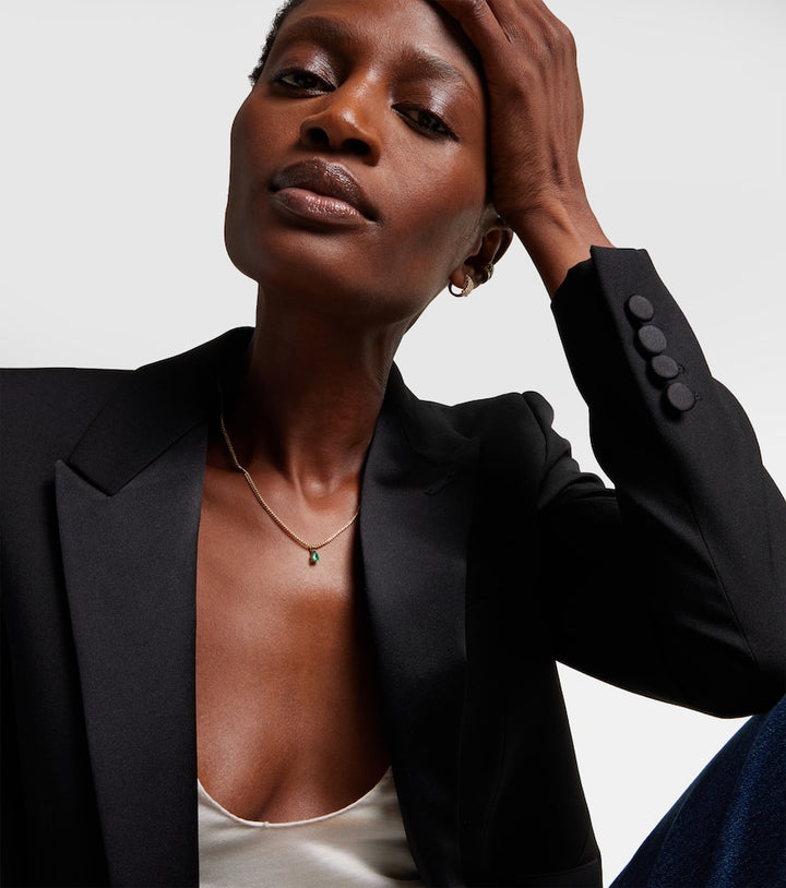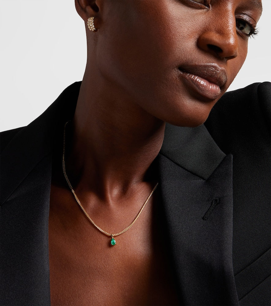 This 18kt Gold Pendant Necklace with Emerald by Anita Ko exudes timeless sophistication. The pear-shaped emerald pendant symbolizes growth and vitality, while the Cuban chain adds a bold, modern touch, making it perfect for layering or standalone wear.