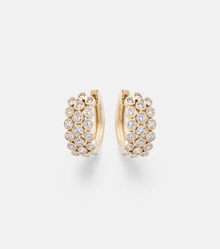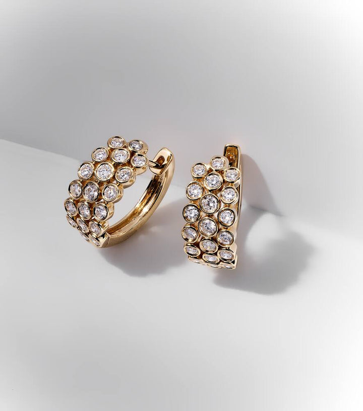 These 3 Row 18kt Gold Hoop Earrings with Diamonds by Anita Ko offer modern sophistication through layered brilliance. The three rows of bezel-set diamonds create a sparkling effect that symbolizes balance and elegance, making them ideal for daily wear or special occasions.