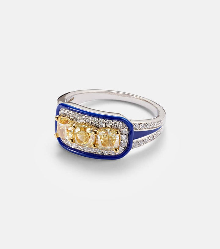 Trio Cushion 18kt white gold pinky ring with diamonds