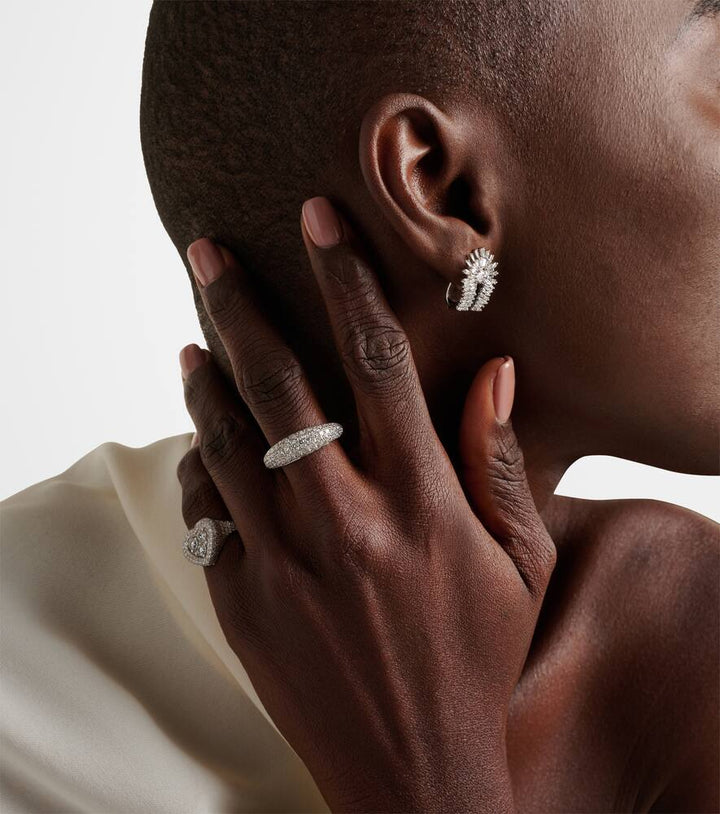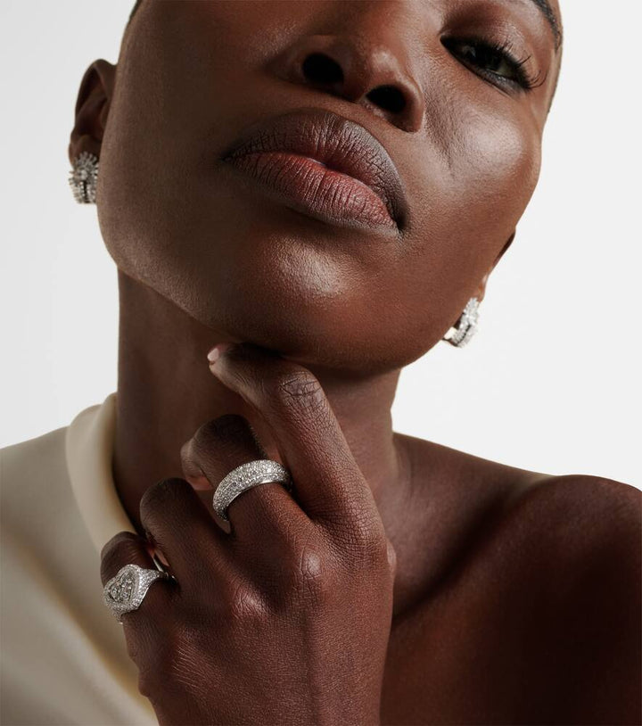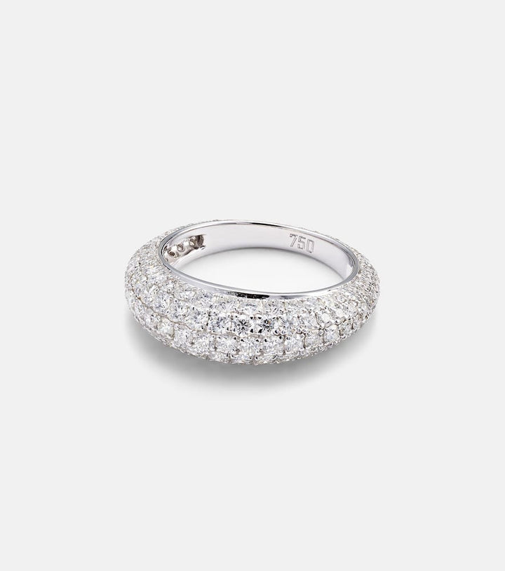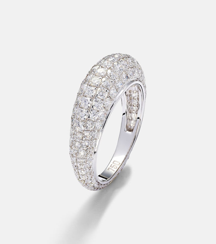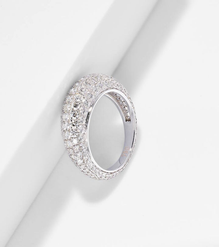 This Diamond Disco 18kt White Gold Ring by Kamyen radiates contemporary glamour. The pavé-set round diamonds catch light brilliantly, symbolizing celebration and sophisticated style, perfect as a standout piece.