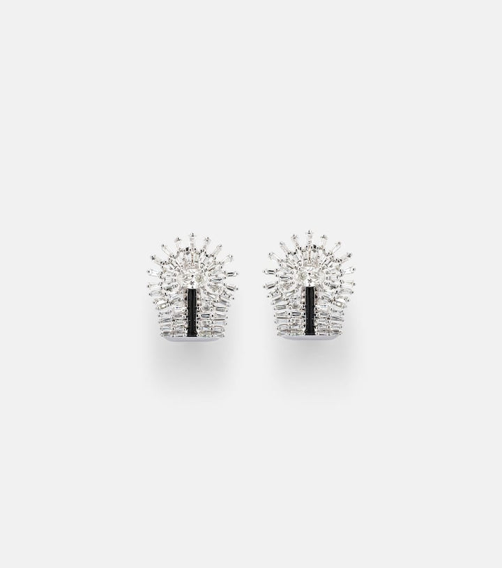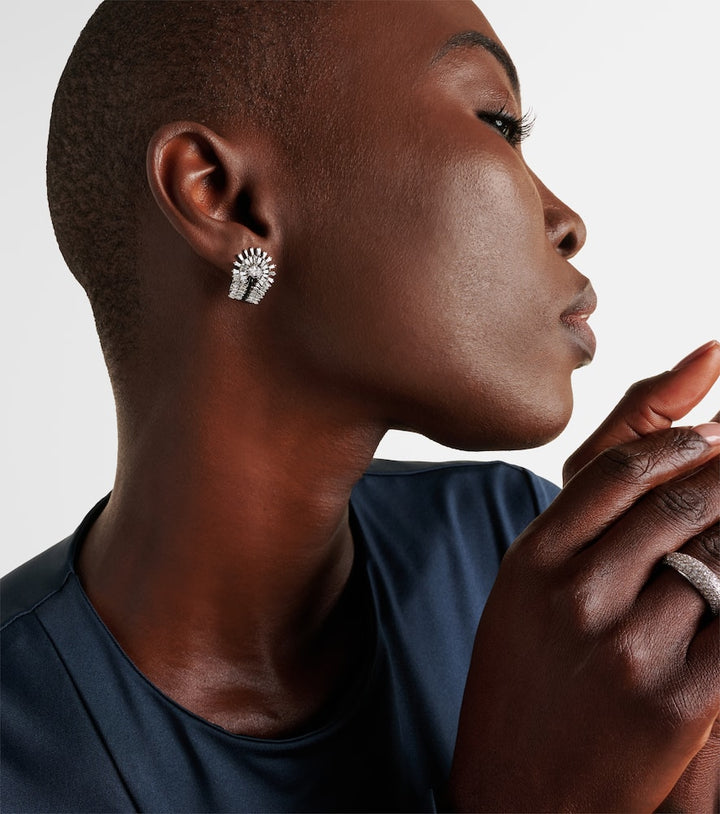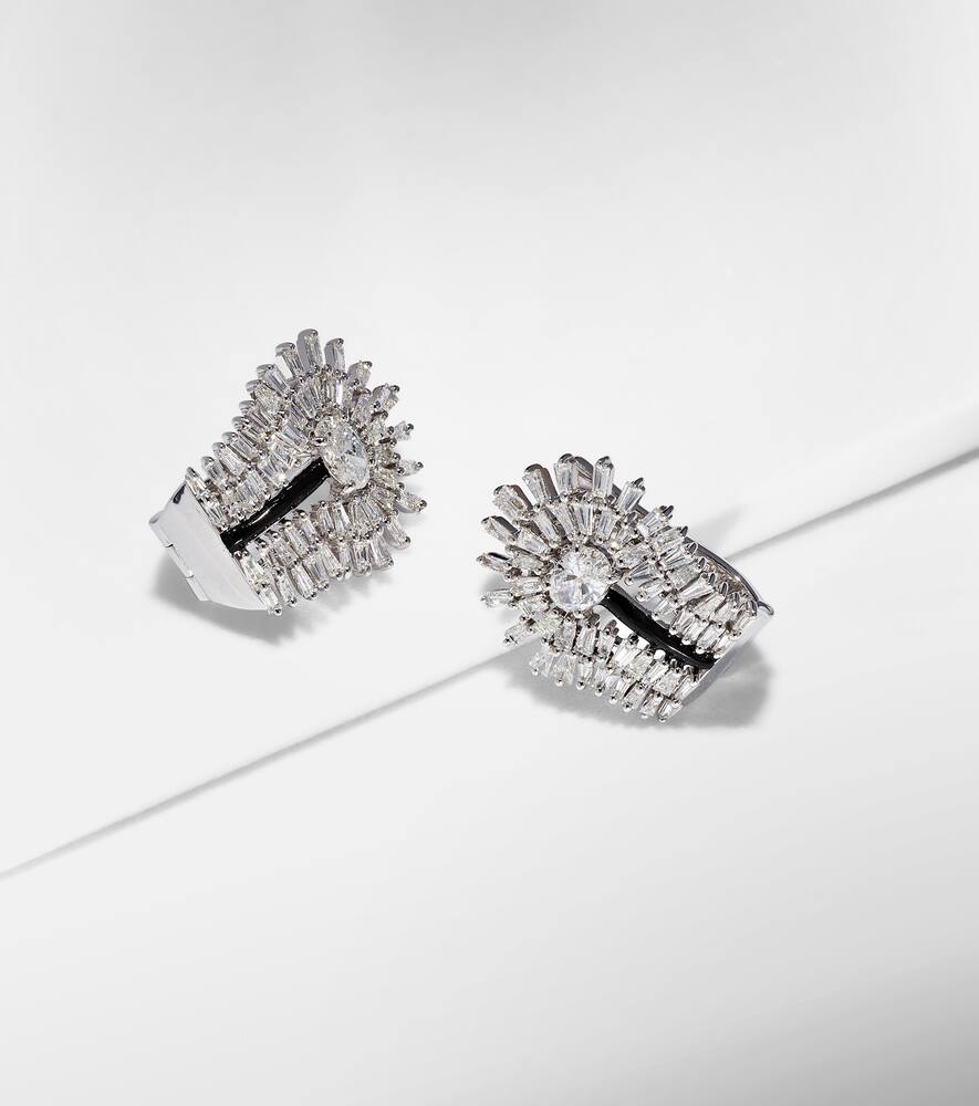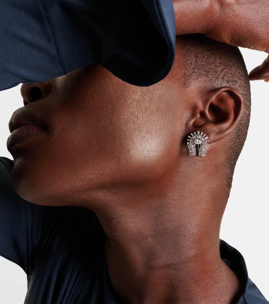 These Eyelash 18kt White Gold Earrings with Diamonds by Kamyen extend the sophistication of the matching ring. The combination of baguette and oval-cut diamonds offers brilliance and movement, perfect for elevating a refined look.