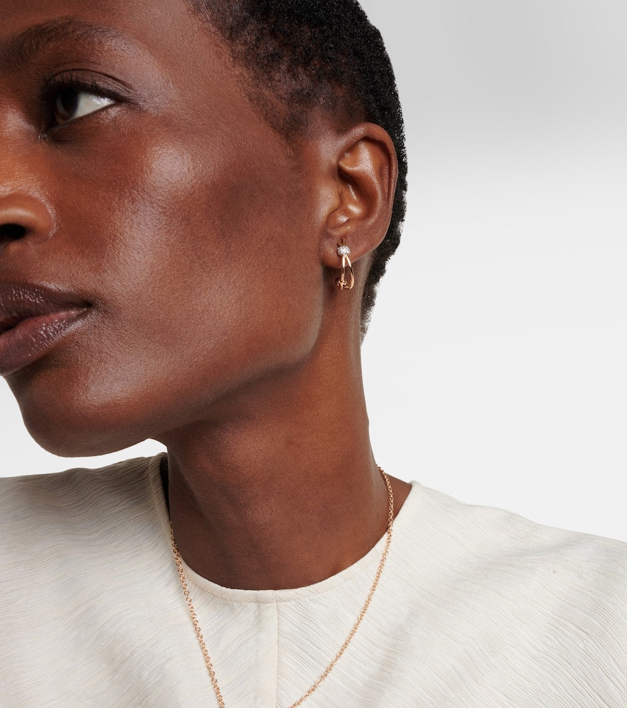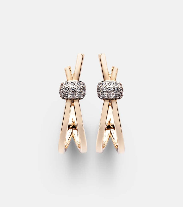 These Pomellato Together Rose Gold Earrings are designed to merge classic glamour with modern design, featuring 30 diamonds totaling 0.1ctw delicately set on rhodium-plated rose gold. Their elegant shape enhances both casual and formal ensembles.