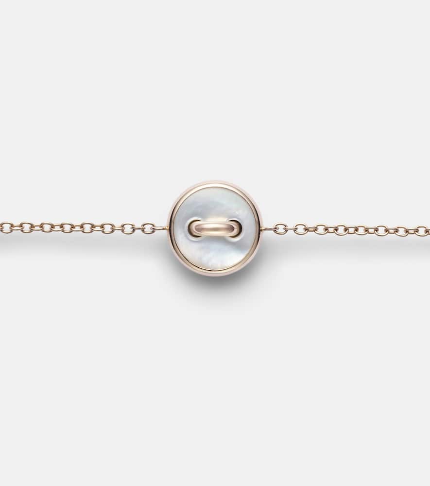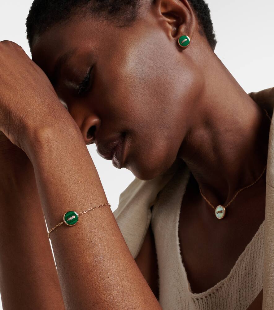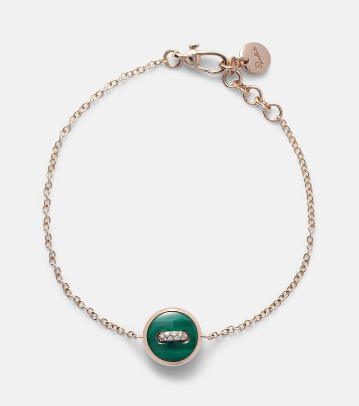 This Pom Pom Dot Chain Bracelet with Gemstones by Pomellato is a playful yet elegant mix of colors and textures. Featuring malachite, mother-of-pearl, and sparkling diamonds, it evokes joy and modern sophistication in every detail.