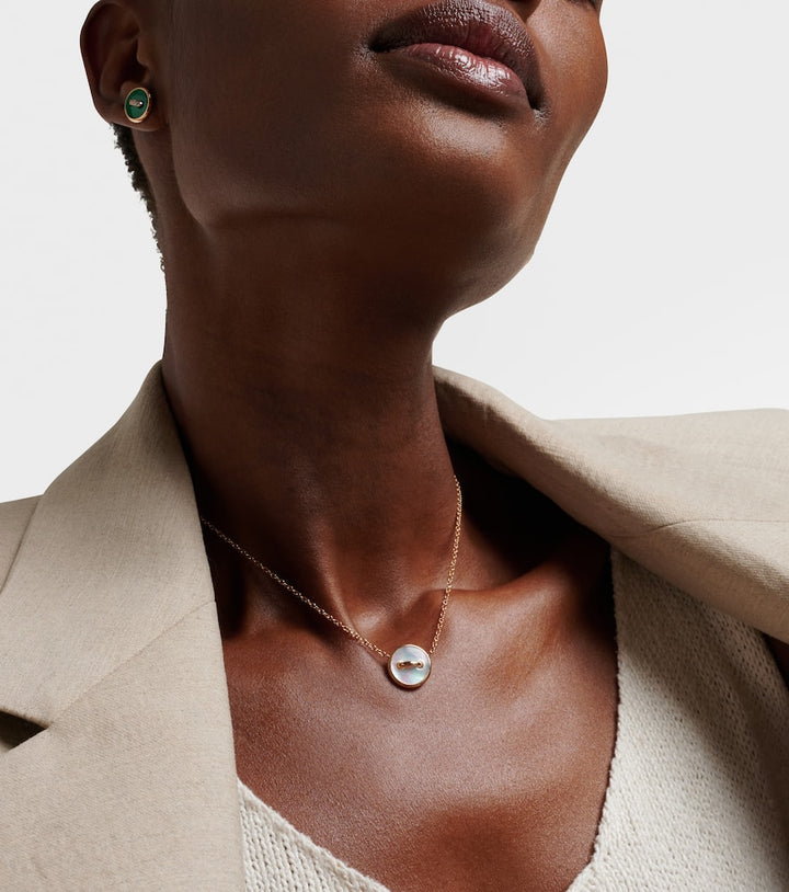 This Pom Pom Dot Pendant Necklace with Gemstones by Pomellato merges color and radiance, featuring malachite, mother-of-pearl, and pavé-set diamonds for a refined and playful statement of style.