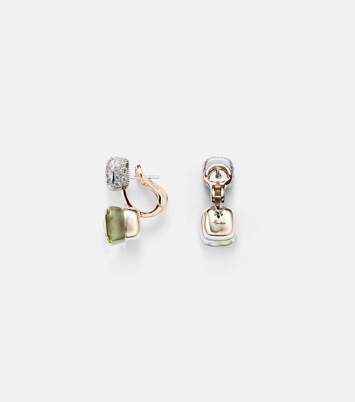 Nudo 18kt rose and white gold earrings with prasiolites and diamonds