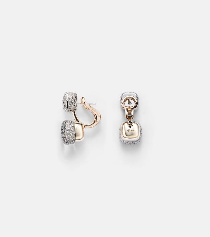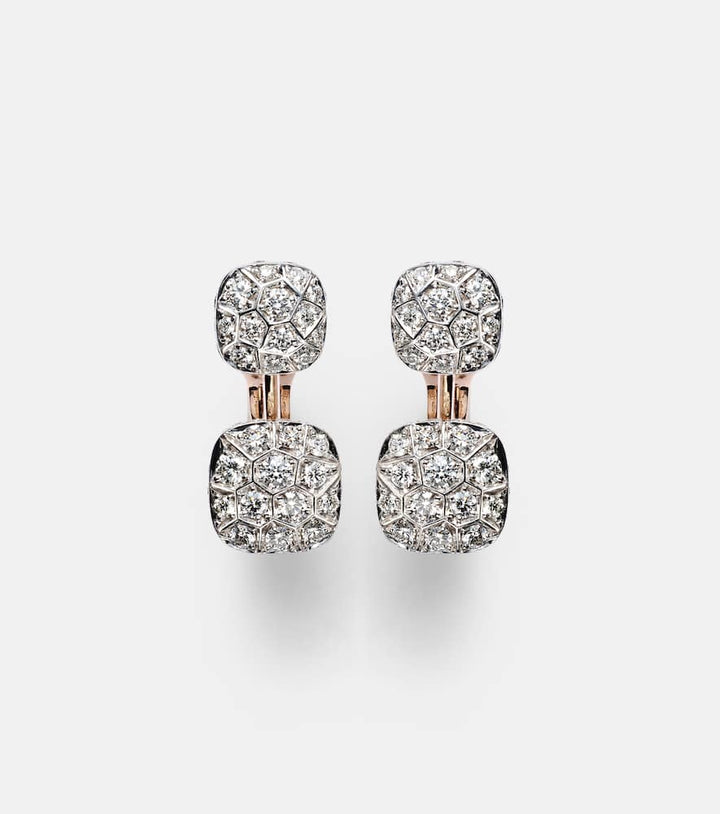 These Nudo Earrings with Diamonds by Pomellato are a spectacular expression of brilliance, featuring 170 pavé-set round diamonds totaling 3.7ctw on rhodium-plated rose and white gold. Their luxurious design balances intensity and elegance, perfect for making a statement at any occasion.
