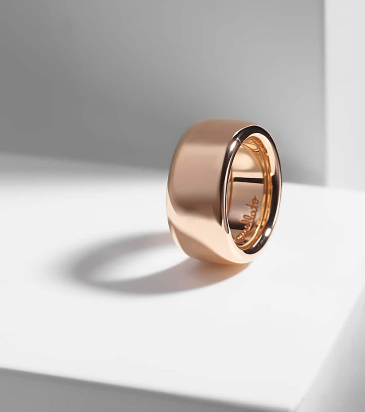 This Iconica Ring in 18kt Rose Gold by Pomellato is a sleek, modern statement piece, showcasing the warmth and radiance of polished rose gold. Its minimalistic silhouette emphasizes refined craftsmanship and timeless elegance.