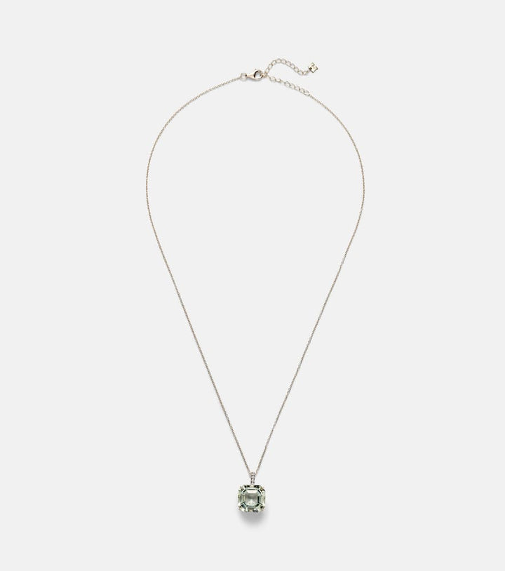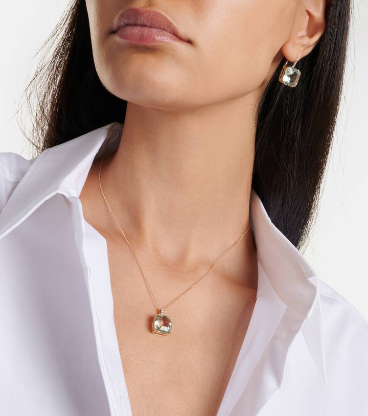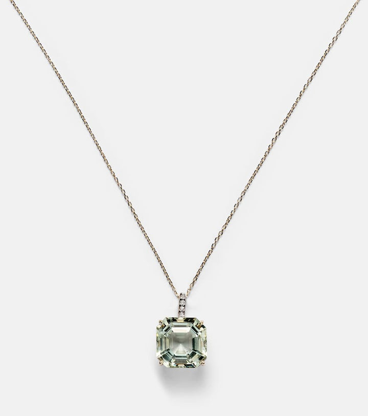 Handcrafted in 14kt yellow gold with an 8.15ct asscher-cut green amethyst and 0.036ct pavé-set diamonds. Adjustable length 41–46cm (16–18 inches); pendant measures 18mm height × 11mm width. Lobster-clasp fastening.