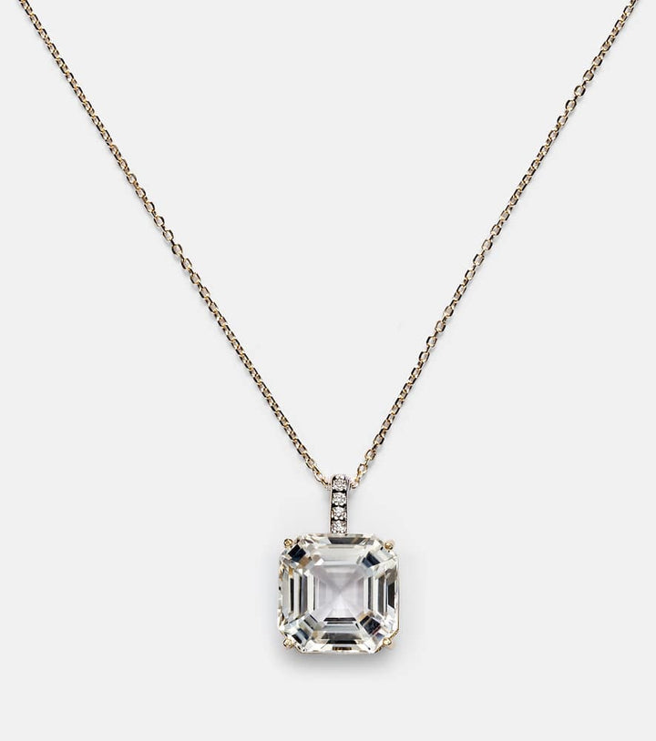 Handcrafted in 14kt yellow gold with an 8.30ct asscher-cut white topaz and 0.036ct pavé-set diamonds. Adjustable length 41–46cm (16–18 inches); pendant measures 18mm height × 11mm width. Lobster-clasp fastening.