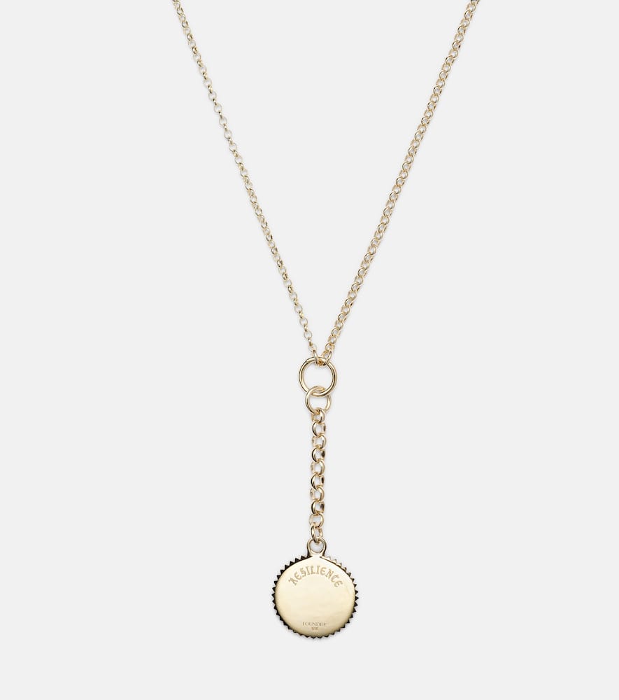 This FoundRae Resilience Small Mixed Belcher Extension 18kt gold chain necklace with diamonds by FoundRae combines a delicate chain with a pavé diamond accent, symbolizing perseverance and adaptability. Its versatile design allows effortless layering or solo wear as a subtle yet meaningful piece.