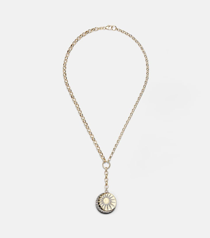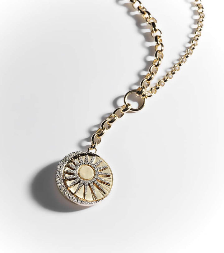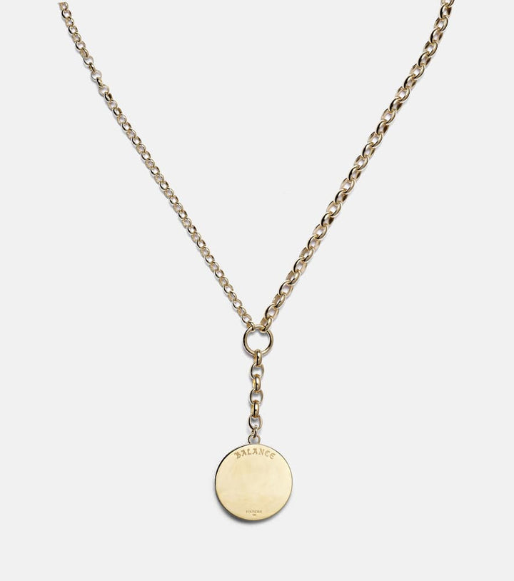 This FoundRae Balance 18kt gold necklace with diamonds by FoundRae celebrates harmony and elegance with its generous pavé diamond centerpiece. The necklace embodies strength and refinement, ideal for layering or as a standalone statement piece.