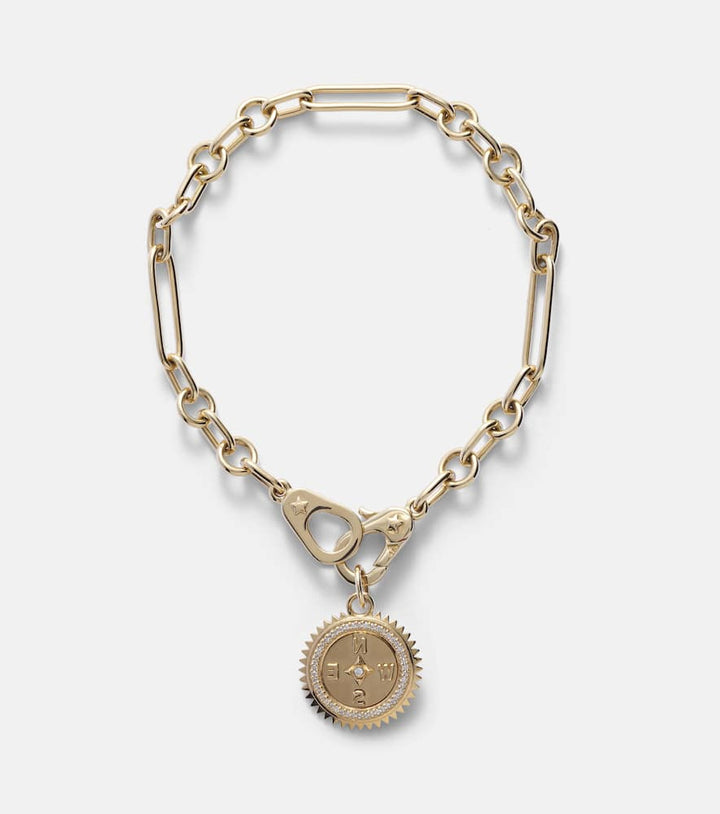 This FoundRae Internal Compass 18kt gold bracelet with diamonds by FoundRae symbolizes guidance and clarity, adorned with subtle prong-set diamonds for a refined sparkle. Perfect as a meaningful everyday accessory or layered with other bracelets.