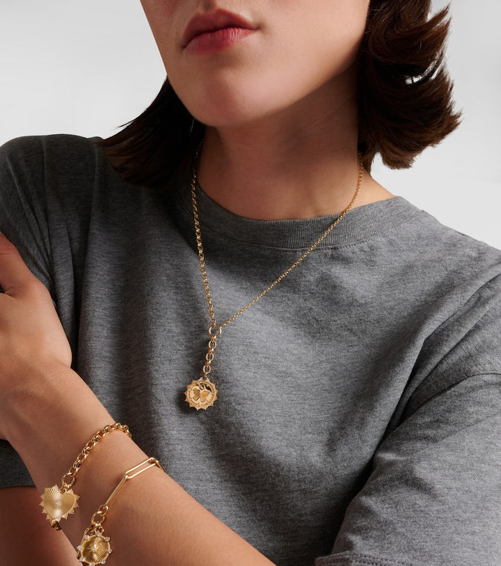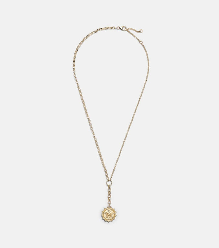 Handmade in 18kt yellow gold with round-cut pavé-set diamonds totaling 0.04ct, adjustable chain length 46–50.5 cm (18–20 inches), chain width 2–3 mm (0.1 inches). Pendant measures 56 mm (2.2 inches) in length and 26 mm (1 inch) in width. Lobster-clasp fastening.