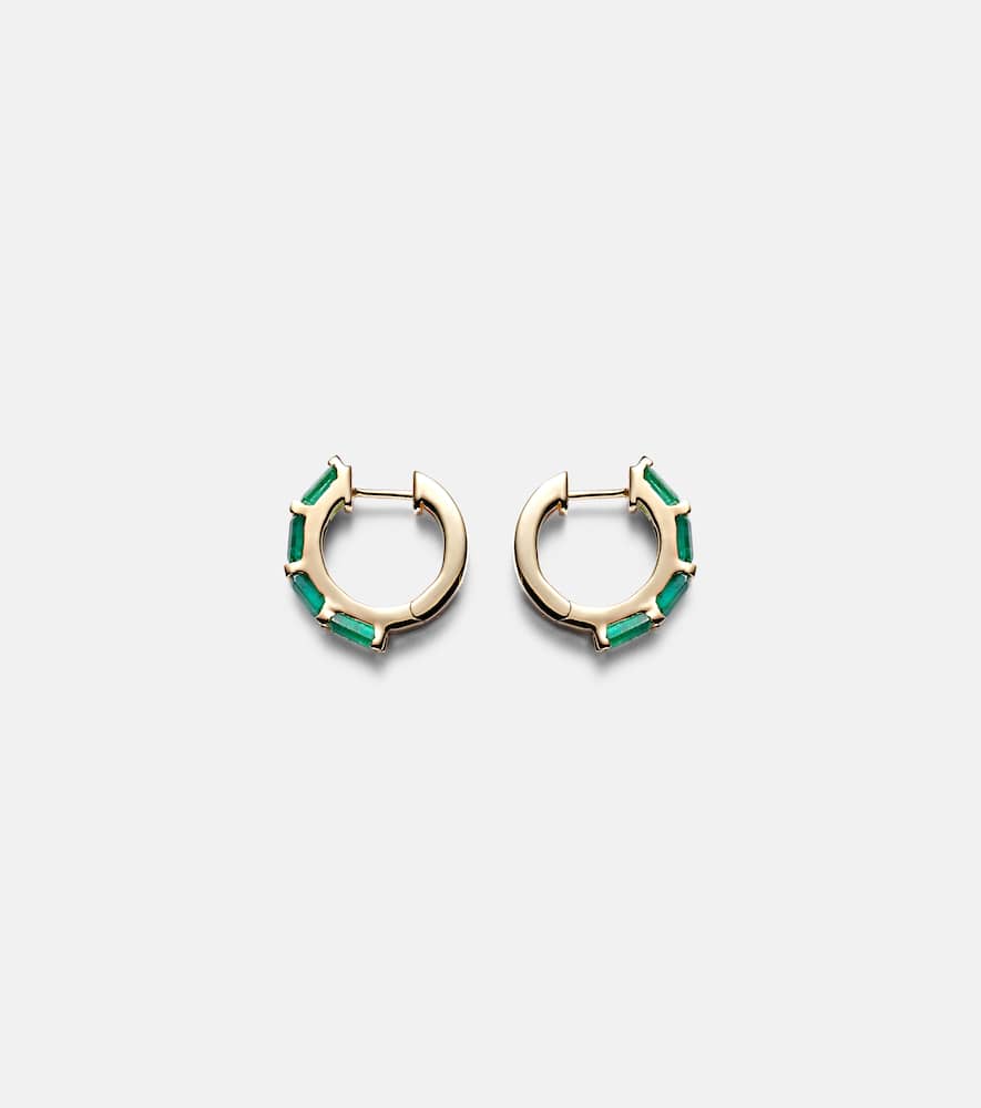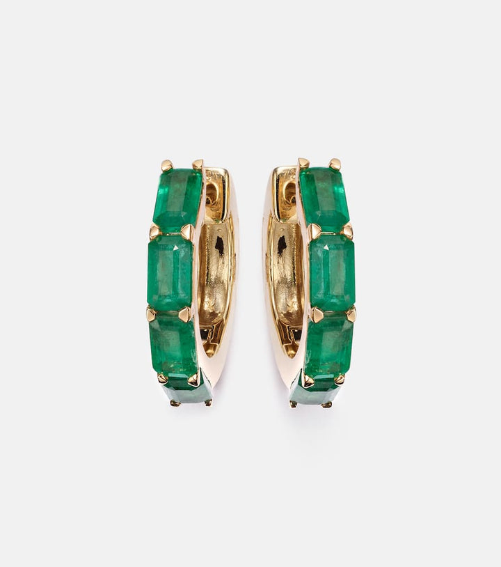 These 18kt Yellow Gold Emerald Earrings by Shay Jewelry feature vibrant emeralds set in a classic design, conveying timeless beauty and refinement.
