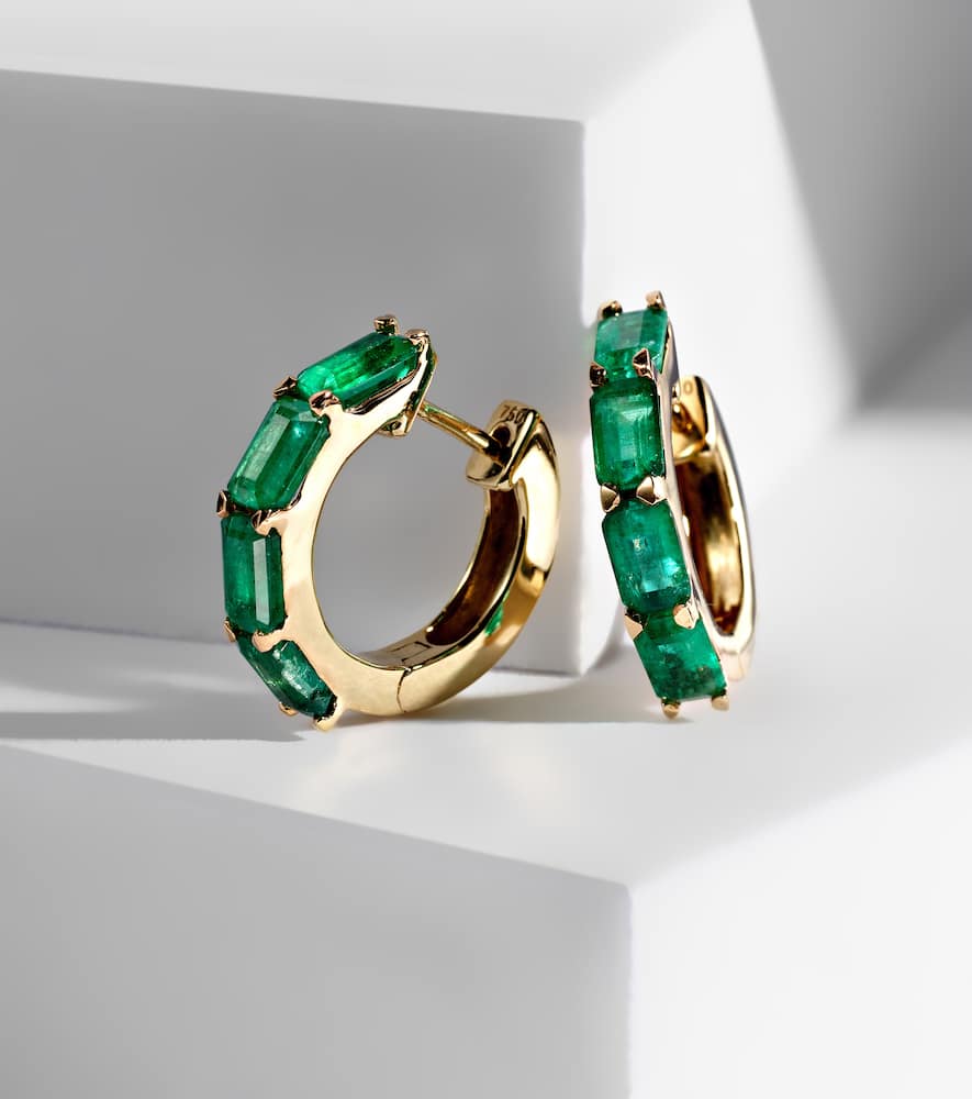 Handcrafted in 18kt yellow gold with emeralds totaling 2.08ct, maximum width 3 mm (0.1 inches), diameter 11 mm (0.45 inches).