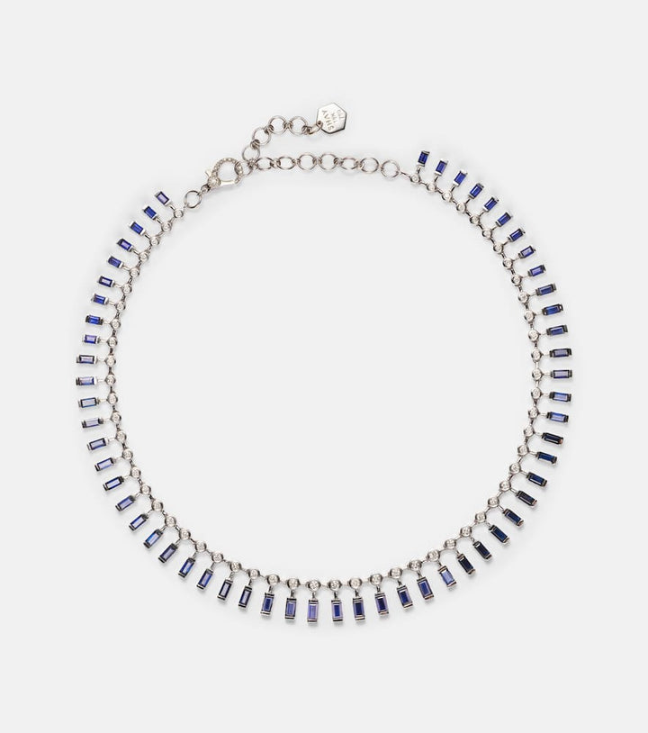 This 18kt White Gold Necklace by Shay Jewelry combines brilliant sapphires and diamonds in a luxurious design, evoking elegance, sophistication, and timeless style.