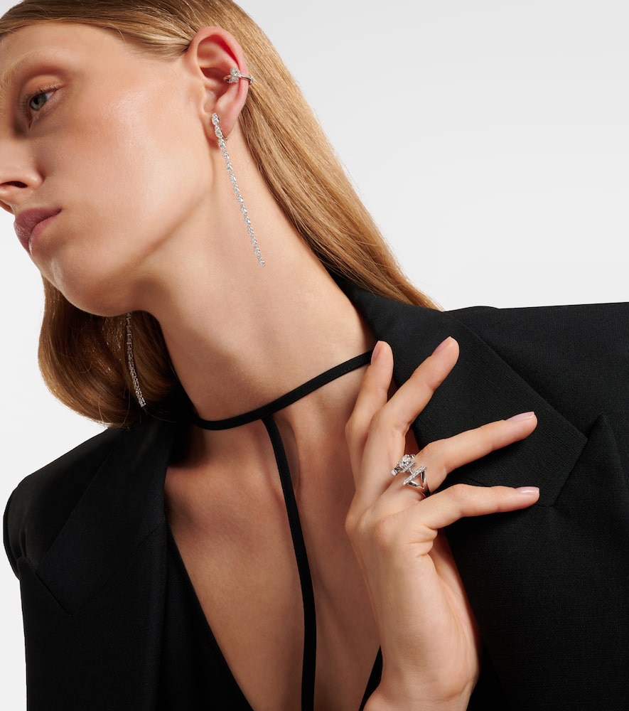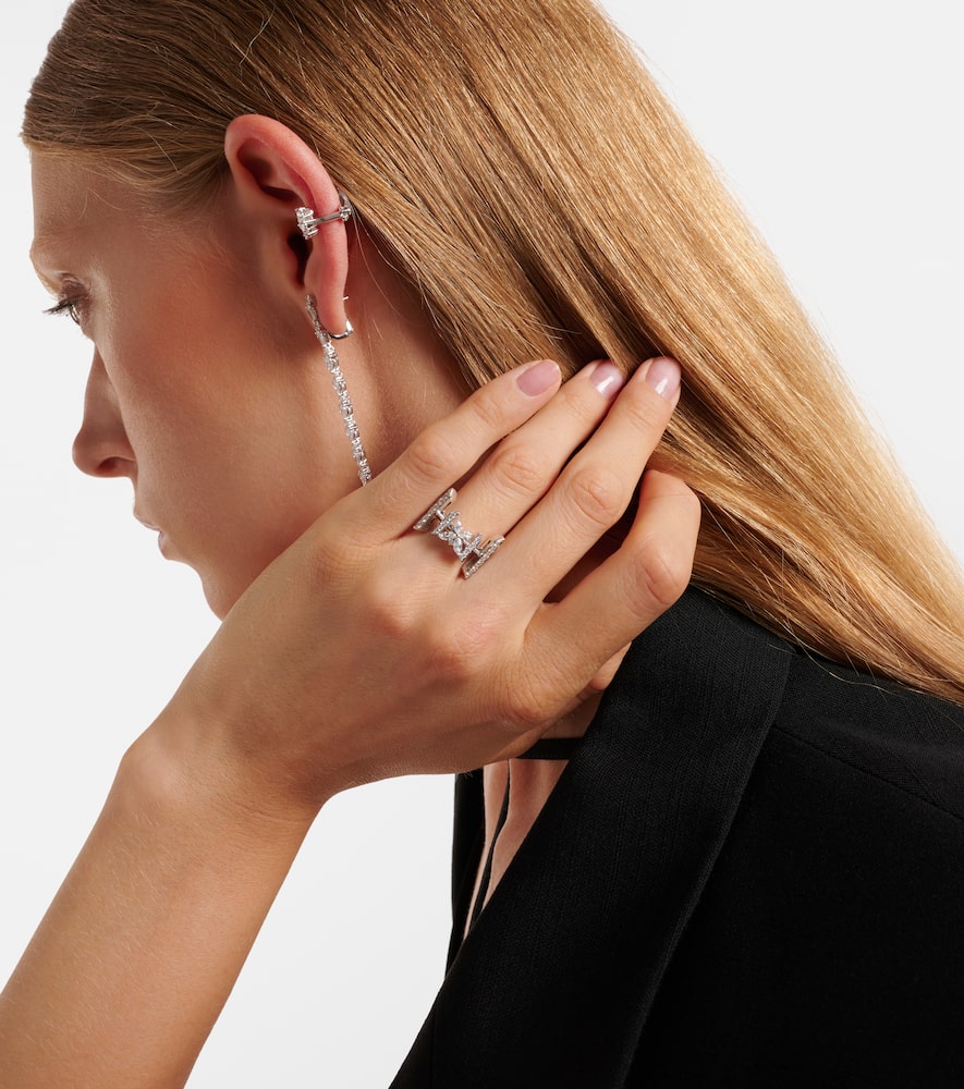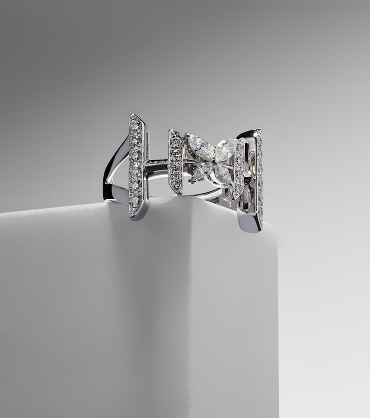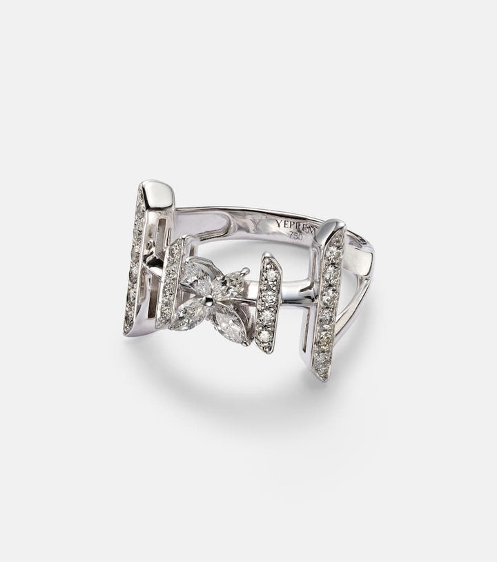 This Y-Not Ring by Yeprem is an elegant statement in 18kt white gold, set with 25 round and marquise-cut diamonds that create a sparkling band of refined luxury.