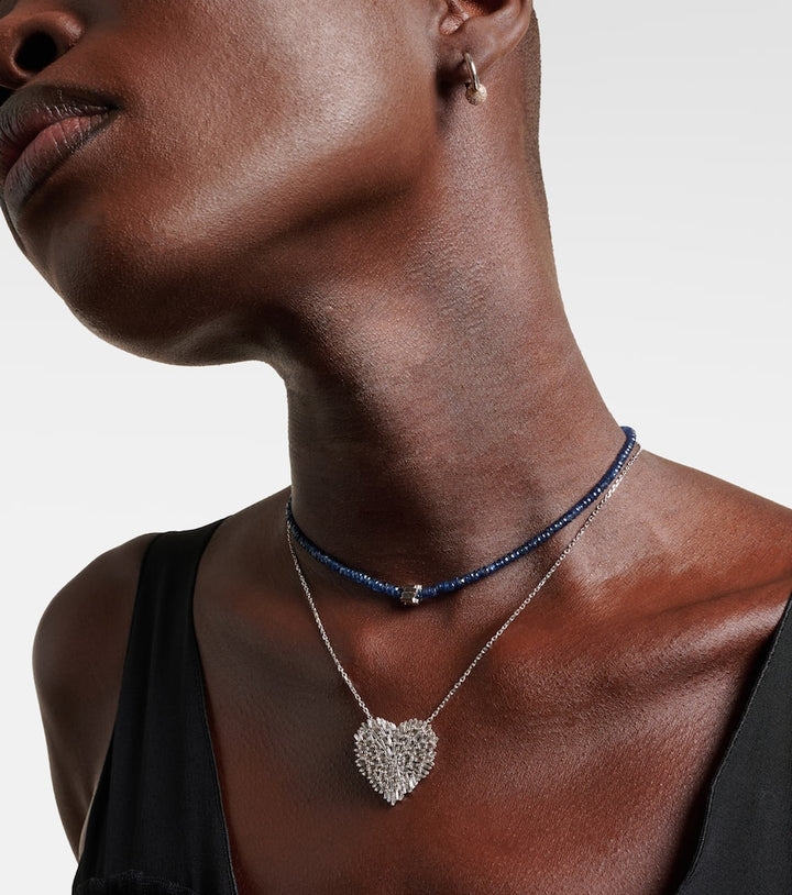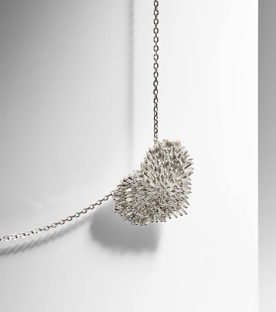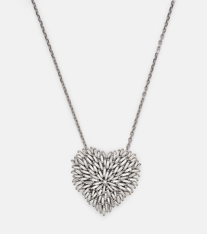 This White Gold Pendant Necklace by Suzanne Kalan combines 18kt white gold with a mix of round- and baguette-cut diamonds totaling 1.47ct, offering refined sparkle in a sleek, geometric pendant design.
