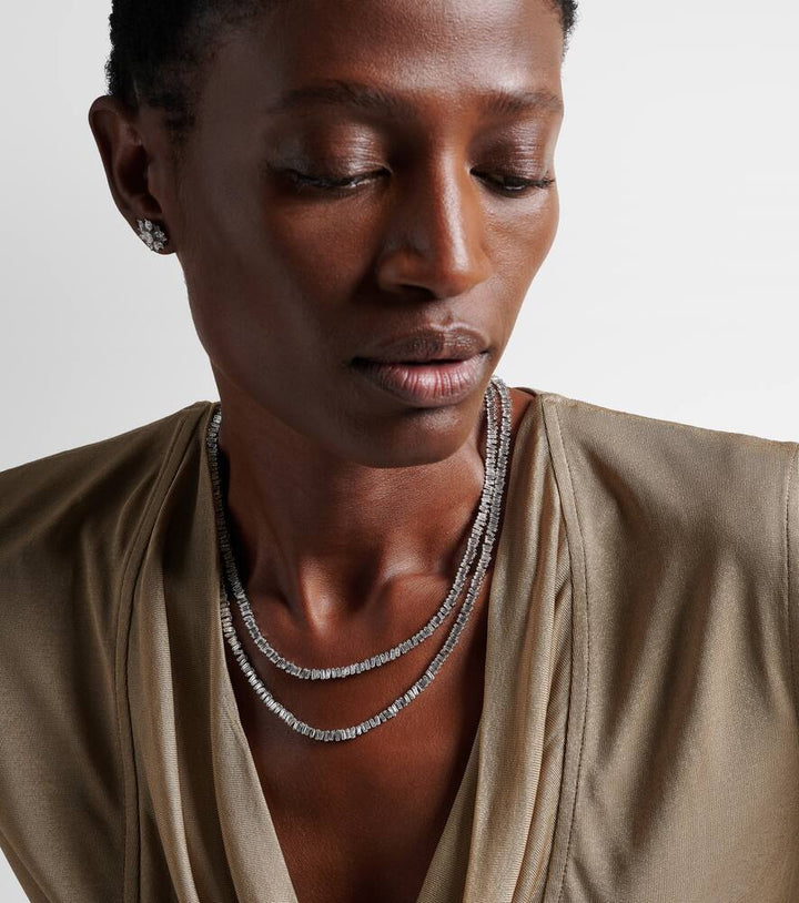This Classic Necklace by Suzanne Kalan is a statement of extraordinary luxury, featuring 22.5ctw of baguette-cut white diamonds set in 18kt white gold, designed to drape elegantly and command attention.