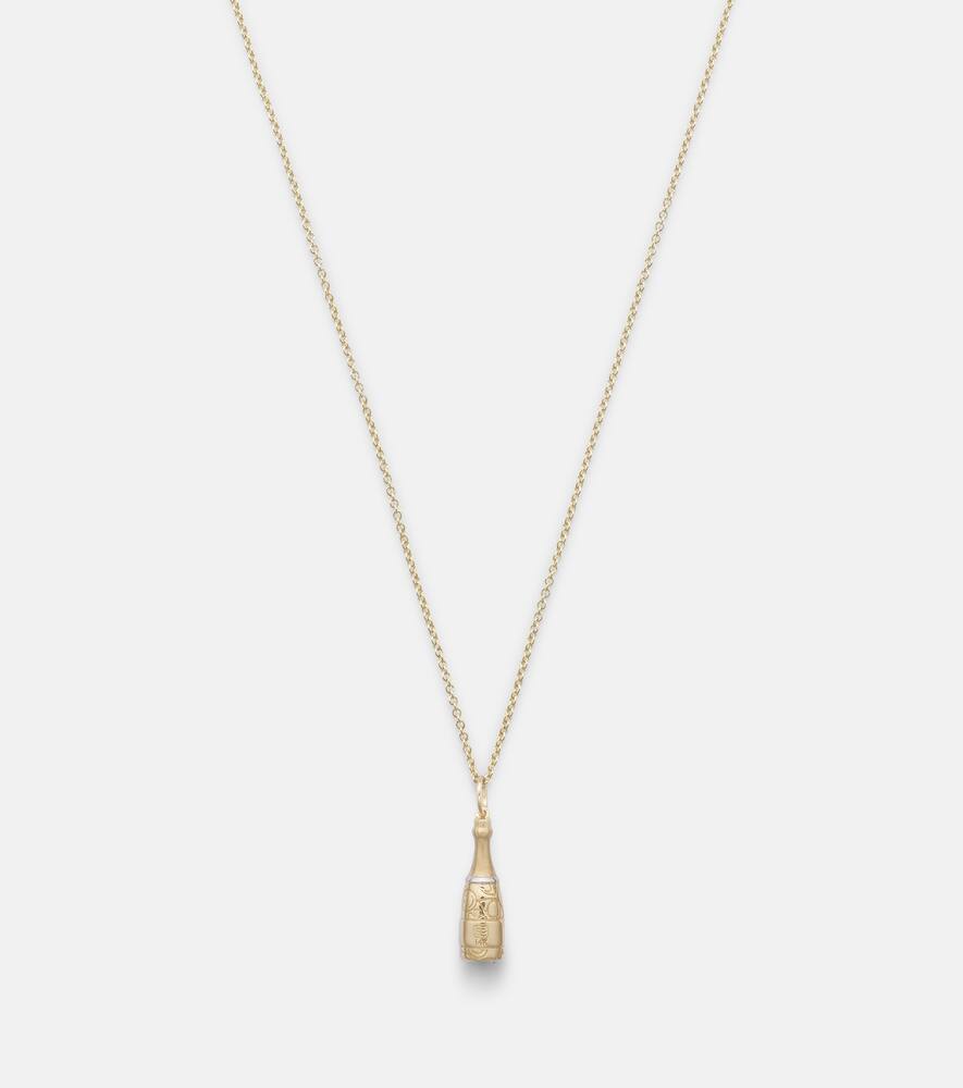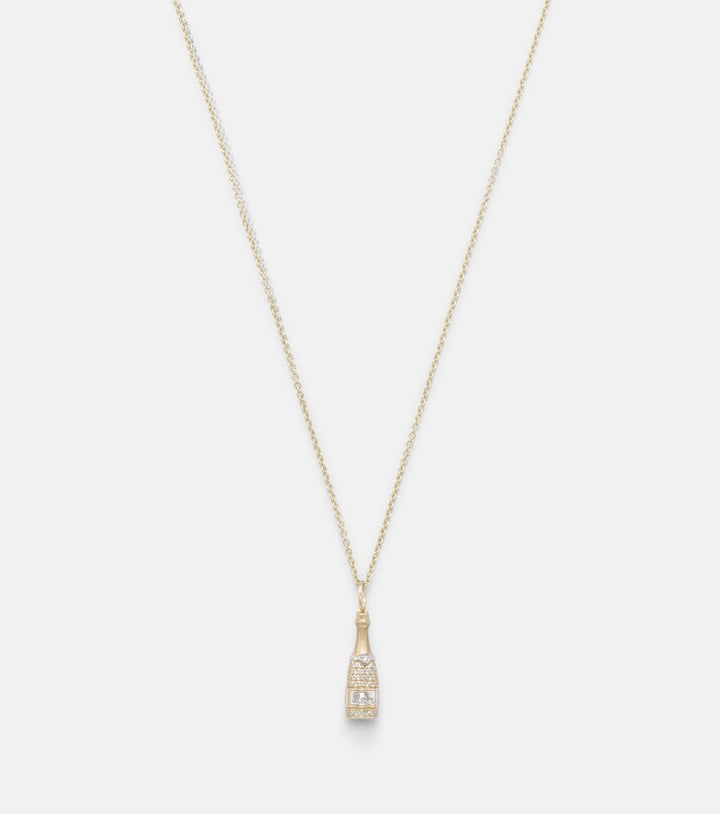 Champagne Bottle 14kt gold pendant necklace with diamonds